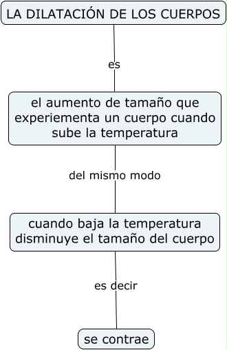 Este Cmap, tiene información relacionada con: La dilatación de los cuerpos, LA DILATACIÓN DE LOS CUERPOS es el aumento de tamaño que experiementa un cuerpo cuando sube la temperatura, cuando baja la temperatura disminuye el tamaño del cuerpo es decir se contrae, el aumento de tamaño que experiementa un cuerpo cuando sube la temperatura del mismo modo cuando baja la temperatura disminuye el tamaño del cuerpo