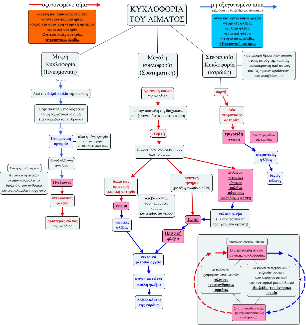 Αυτός ο εννοιολογικός χάρτης, που δημιουργήθηκε με το IHMC Cmap Tools, περιέχει πλήροφορίες που σχετίζονται με: Kykloforia aimatos, τριχοειδή αγγεία των τοιχωμάτων της καρδιάς, Ηπατική φλέβα κεντρικά φλεβικά αγγεία, Ήπαρ Ηπατική φλέβα, νεφρά αποβάλλονται τοξικές ουσίες -ουρία και περίσσεια νερού, Στα τριχοειδή αγγεία μεγάλης κυκλοφορίας, αορτή Δύο στεφανιαίες αρτηρίες, Η αορτή διακλαδίζεται προς όλο το σώμα δεξιά και αριστερή νεφρική αρτηρία, Στα τριχοειδή αγγεία μεγάλης κυκλοφορίας ανταλλαγή άχρηστων ή τοξικών ουσιών που παράγονται από τον κυτταρικό μεταβολισμό -διοξείδιο του άνθρακα -ουρία, ΚΥΚΛΟΦΟΡΙΑ ΤΟΥ ΑΙΜΑΤΟΣ Μικρή Κυκλοφορία (Πνευμονική), κάτω και άνω κοίλη φλέβα Δεξιός κόλπος της καρδιάς, μη οξυγονωμένο αίμα (πλούσιο σε διοξείδιο του άνθρακα), τριχοειδή αγγεία στεφανιαίες φλέβες, Η αορτή διακλαδίζεται προς όλο το σώμα ηπατική αρτηρία (με οξυγονωμένο αίμα), δεξιά και αριστερή νεφρική αρτηρία νεφρά, Δύο στεφανιαίες αρτηρίες τριχοειδή αγγεία, Η αορτή διακλαδίζεται προς όλο το σώμα Σπλάχνα -στομάχι -έντερο -σπλήνα -πάγκρεας -χοληδόχος κύστη, Αριστερή κοιλία της καρδιάς με την συστολή της διοχετεύει το οξυγονωμένο αίμα στην αορτή, Στα τριχοειδή αγγεία μεγάλης κυκλοφορίας ανταλλαγή χρήσιμων συστατικών -οξυγόνο -υδατάνθρακες -ορμόνες, με την συστολή της διοχετεύει το οξυγονωμένο αίμα στην αορτή Αορτή, ηπατική αρτηρία (με οξυγονωμένο αίμα) Ήπαρ