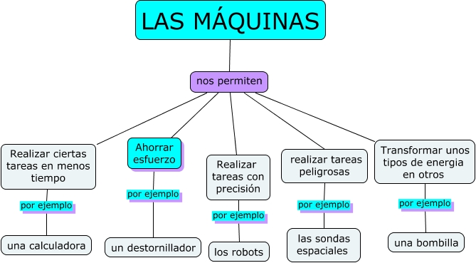 Este Cmap, tiene información relacionada con: Las maquinas, realizar tareas peligrosas por ejemplo las sondas espaciales, Realizar tareas con precisión por ejemplo los robots, nos permiten Realizar tareas con precisión, nos permiten realizar tareas peligrosas, nos permiten Realizar ciertas tareas en menos tiempo, nos permiten Transformar unos tipos de energia en otros, Transformar unos tipos de energia en otros por ejemplo una bombilla, Realizar ciertas tareas en menos tiempo por ejemplo una calculadora, nos permiten Ahorrar esfuerzo, Ahorrar esfuerzo por ejemplo un destornillador, LAS MÁQUINAS nos permiten