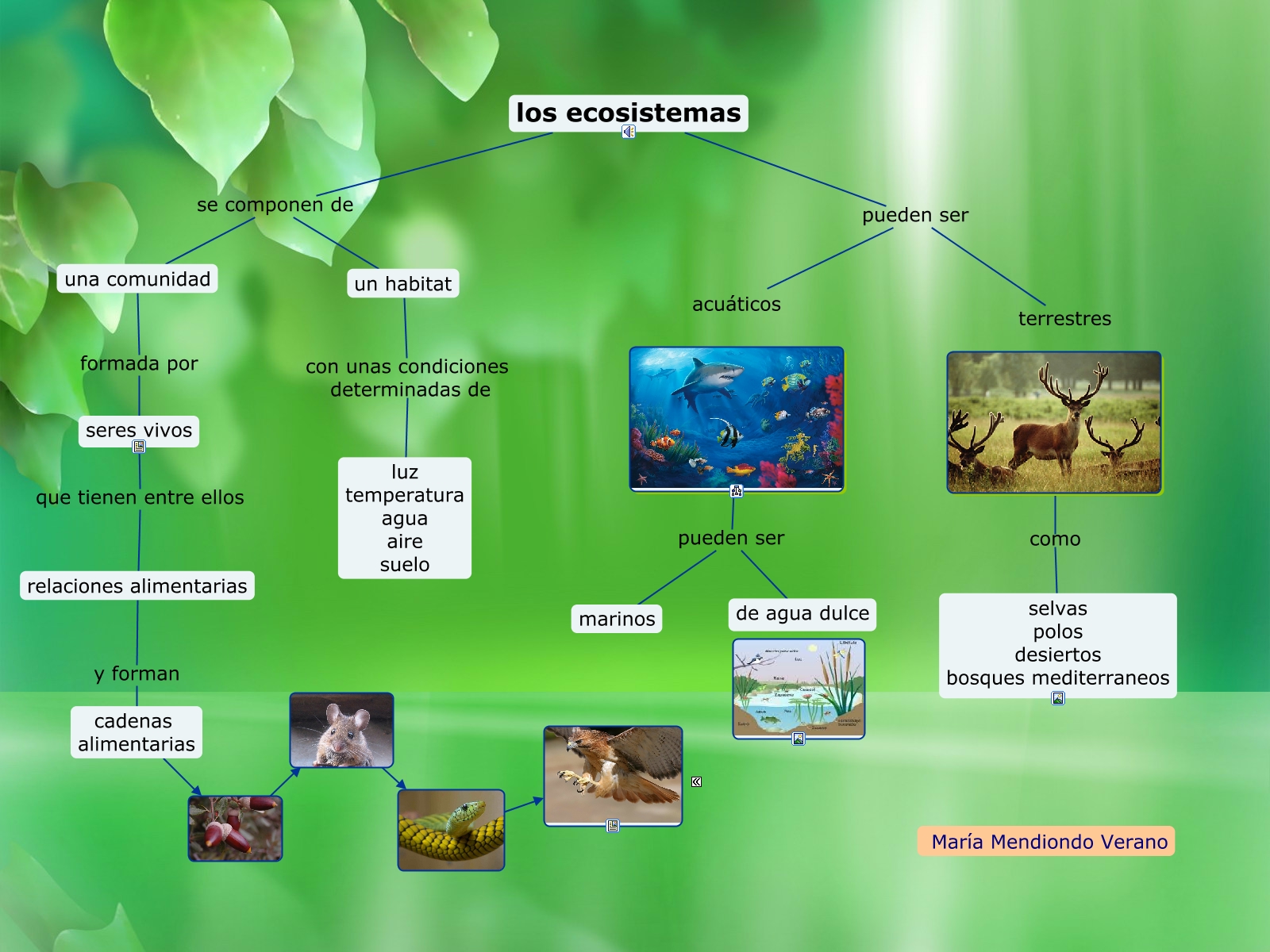 Este Cmap, tiene información relacionada con: ecosistemas, un habitat con unas condiciones determinadas de luz temperatura agua aire suelo, como selvas polos desiertos bosques mediterraneos,, terrestres ????, los ecosistemas se componen de un habitat, acuáticos ????, relaciones alimentarias y forman cadenas alimentarias, cadenas alimentarias, los ecosistemas pueden ser acuáticos, los ecosistemas pueden ser terrestres, marinos pueden ser de agua dulce, marinos pueden ser,, seres vivos que tienen entre ellos relaciones alimentarias, los ecosistemas se componen de una comunidad,, una comunidad formada por seres vivos
