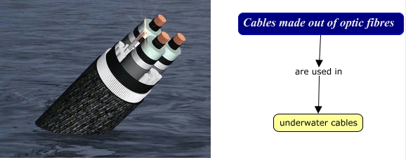 This Concept Map, created with IHMC CmapTools, has information related to: Underwater cables, Cables made out of optic fibres are used in underwater cables