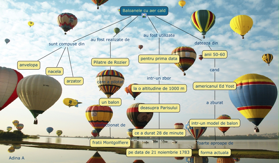 This Concept Map, created with IHMC CmapTools, has information related to: Baloane cu aer cald, intr-un model de balon foarte aproape de forma actuala, pentru prima data intr-un zbor la o altitudine de 1000 m, pentru prima data intr-un zbor deasupra Parisului, Baloanele cu aer cald sunt compuse din nacela, anii 50-60 cand americanul Ed Yost, Baloanele cu aer cald au fost realizate de Pilatre de Rozier, pentru prima data intr-un zbor ce a durat 28 de minute, americanul Ed Yost a zburat intr-un model de balon, Pilatre de Rozier care a pilotat un balon, un balon confectionat de fratii Montgolfiere, Baloanele cu aer cald sunt compuse din anvelopa, Baloanele cu aer cald au fost utilizate pentru prima data, pentru prima data intr-un zbor pe data de 21 noiembrie 1783, pentru prima data intr-un zbor deasupra Parisului, Baloanele cu aer cald sunt compuse din arzator, Baloanele cu aer cald dateaza din anii 50-60