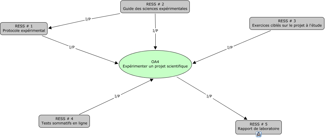 Cette carte de concepts créée avec IHMC CmapTools traite de: OA4, RESS # 1 Protocole expérimental I/P OA4 Expérimenter un projet scientifique, OA4 Expérimenter un projet scientifique I/P RESS # 5 Rapport de laboratoire, RESS # 2 Guide des sciences expérimentales I/P RESS # 1 Protocole expérimental, RESS # 4 Tests sommatifs en ligne I/P OA4 Expérimenter un projet scientifique, RESS # 3 Exercices ciblés sur le projet à l'étude I/P OA4 Expérimenter un projet scientifique