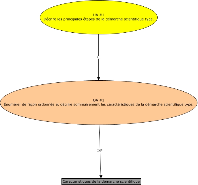 Cette carte de concepts créée avec IHMC CmapTools traite de: UA 1, OA #1 Énumérer de façon ordonnée et décrire sommairement les caractéristiques de la démarche scientifique type. I/P Caractéristiques de la démarche scientifique, UA #1 Décrire les principales étapes de la démarche scientifique type. C OA #1 Énumérer de façon ordonnée et décrire sommairement les caractéristiques de la démarche scientifique type.
