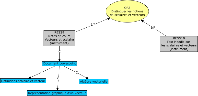 Cette carte de concepts créée avec IHMC CmapTools traite de: OA3, RESS10 Test Moodle sur les scalaires et vecteurs (instrument) I/P OA3 Distinguer les notions de scalaires et vecteurs, RESS9 Notes de cours Vecteurs et scalaire (instrument) C Document powerpoint, RESS9 Notes de cours Vecteurs et scalaire (instrument) I/P OA3 Distinguer les notions de scalaires et vecteurs, Document powerpoint C Définitions scalaire et vecteur, Document powerpoint C Algèbre vectorielle, Document powerpoint C Représentation graphique d'un vecteur
