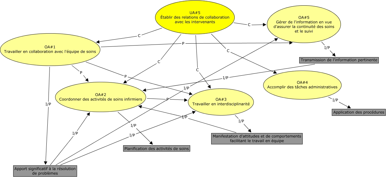 Cette carte de concepts créée avec IHMC CmapTools traite de: UA5, OA#1 Travailler en collaboration avec l'équipe de soins P OA#3 Travailler en interdisciplinarité, UA#5 Établir des relations de collaboration avec les intervenants C OA#1 Travailler en collaboration avec l'équipe de soins, UA#5 Établir des relations de collaboration avec les intervenants C OA#3 Travailler en interdisciplinarité, OA#1 Travailler en collaboration avec l'équipe de soins P OA#2 Coordonner des activités de soins infirmiers, OA#1 Travailler en collaboration avec l'équipe de soins I/P Apport significatif à la résolution de problèmes, Apport significatif à la résolution de problèmes I/P OA#5 Gérer de l'information en vue d'assurer la continuité des soins et le suivi, Apport significatif à la résolution de problèmes I/P OA#3 Travailler en interdisciplinarité, Manifestation d'attitudes et de comportements facilitant le travail en équipe I/P OA#2 Coordonner des activités de soins infirmiers, UA#5 Établir des relations de collaboration avec les intervenants C OA#5 Gérer de l'information en vue d'assurer la continuité des soins et le suivi, OA#4 Accomplir des tâches administratives I/P Application des procédures, OA#1 Travailler en collaboration avec l'équipe de soins P OA#5 Gérer de l'information en vue d'assurer la continuité des soins et le suivi, Transmission de l'information pertinente I/P OA#2 Coordonner des activités de soins infirmiers, UA#5 Établir des relations de collaboration avec les intervenants C OA#4 Accomplir des tâches administratives, Apport significatif à la résolution de problèmes I/P OA#2 Coordonner des activités de soins infirmiers, UA#5 Établir des relations de collaboration avec les intervenants C OA#2 Coordonner des activités de soins infirmiers, OA#5 Gérer de l'information en vue d'assurer la continuité des soins et le suivi I/P Transmission de l'information pertinente, OA#2 Coordonner des activités de soins infirmiers I/P Planification des activités de soins, OA#3 Travailler en interdisciplinarité I/P Manifestation d'attitudes et de comportements facilitant le travail en équipe, OA#2 Coordonner des activités de soins infirmiers P OA#3 Travailler en interdisciplinarité