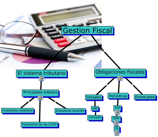 Este Cmap, tiene información relacionada con: Gestión fiscal, El sistema tributario ???? Principales tributos, Periódicas ???? IVA, Gestion Fiscal ???? El sistema tributario, Gestion Fiscal ???? Obligaciones fiscales, Iniciales ???? IAE, Principales tributos ???? Impuestos locacles, Obligaciones fiscales ???? Eventuales, IAE ???? ITP/AJD, Principales tributos ???? Impuestos estatales, IRPF ???? IS, Obligaciones fiscales ???? Iniciales, IVA ???? IRPF, Obligaciones fiscales ???? Periódicas, Principales tributos ???? Impuestos de las CCAA