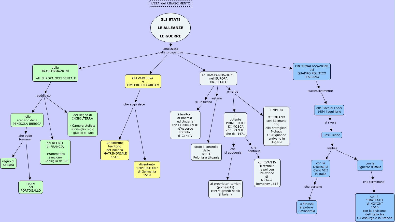 Questa Cmap, creata con IHMC CmapTools, contiene informazioni relative a: guerre stati alleanze - Rinascimento, Il potente PRINCIPATO DI MOSCA con IVAN III che dal 1471 che continua con IVAN IV il terribile e poi con l'elezione di Michele Romanov 1613, Le TRASFORMAZIONI nell'EUROPA ORIENTALE restano sotto il controllo delle DIETE Polonia e Lituania, con le "guerre d'Italia che terminano con il "TRATTATO di NOYON" 1516 con la divisione dell'Italia tra Gli Asburgo e la Francia, Il potente PRINCIPATO DI MOSCA con IVAN III che dal 1471 che si appoggia ai proprietari terrieri (pomesciki) contro grandi nobili (i boiari), Le TRASFORMAZIONI nell'EUROPA ORIENTALE emerge Il potente PRINCIPATO DI MOSCA con IVAN III che dal 1471, GLI STATI LE ALLEANZE LE GUERRE analizzata dalle prospettive GLI ASBURGO e l'IMPERO DI CARLO V, delle TRASFORMAZIONI nell' EUROPA OCCIDENTALE suddiviso del REGNO di FRANCIA - Prammatica sanzione - Consiglio del RE, nello scenario della PENISOLA IBERICA che vede formarsi regno di Spagna, GLI STATI LE ALLEANZE LE GUERRE analizzata dalle prospettive delle TRASFORMAZIONI nell' EUROPA OCCIDENTALE, delle TRASFORMAZIONI nell' EUROPA OCCIDENTALE suddiviso nello scenario della PENISOLA IBERICA, Le TRASFORMAZIONI nell'EUROPA ORIENTALE si unificano i territori di Boemia ed Ungeria con FERDINANDO d'Asburgo fratello di Carlo V, GLI STATI LE ALLEANZE LE GUERRE analizzata dalle prospettive l'INTERNALIZZAZIONE del QUADRO POLITICO ITALIANO, alla Pace di Loddi 1454 l'equilibrio si rivela un'illusione, GLI ASBURGO e l'IMPERO DI CARLO V che acquisisce un enorme territorio per politica MATRIMONIALE 1516, delle TRASFORMAZIONI nell' EUROPA OCCIDENTALE suddiviso del Regno di INGHILTERRA - Camera stellata -Consiglio regio - giudici di pace, con la Discesa di Carlo VIII in Italia che portano a Firenze al potere Savonarola, GLI ASBURGO e l'IMPERO DI CARLO V che acquisisce diventanto "IMPERATORE" di Germania 1519, un'illusione visibile con la Discesa di Carlo VIII in Italia, l'INTERNALIZZAZIONE del QUADRO POLITICO ITALIANO successivamente alla Pace di Loddi 1454 l'equilibrio, Le TRASFORMAZIONI nell'EUROPA ORIENTALE emerge l'IMPERO OTTOMANO con Solimano fino alla battagliadi Mohàcs 1526 quando arrivano in Ungeria