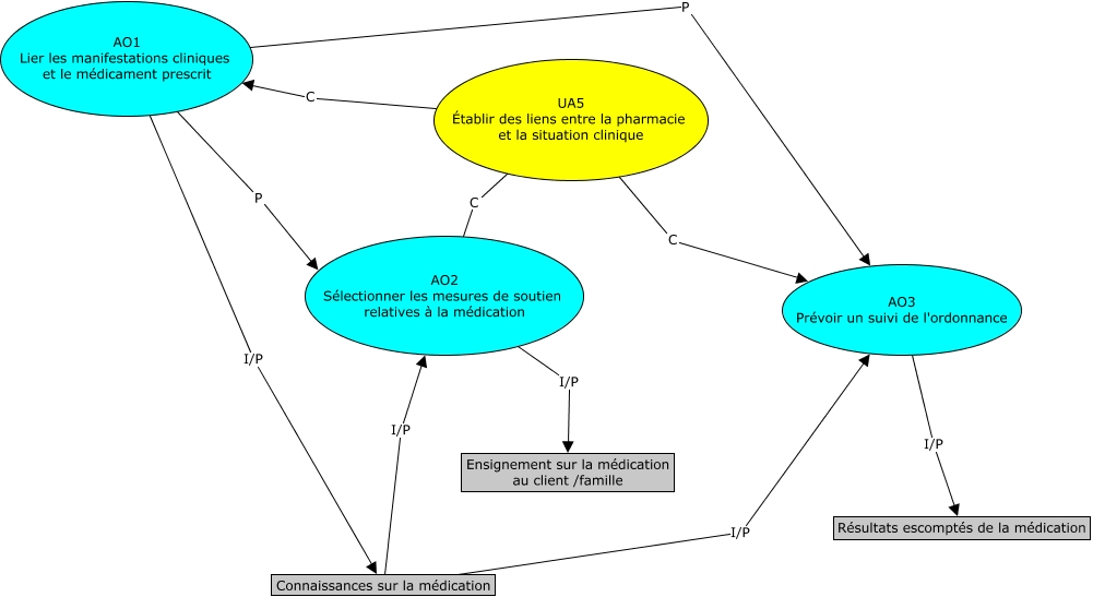Cette carte de concepts créée avec IHMC CmapTools traite de: UA5, Connaissances sur la médication I/P AO2 Sélectionner les mesures de soutien relatives à la médication, UA5 Établir des liens entre la pharmacie et la situation clinique C AO1 Lier les manifestations cliniques et le médicament prescrit, AO2 Sélectionner les mesures de soutien relatives à la médication I/P Ensignement sur la médication au client /famille, AO3 Prévoir un suivi de l'ordonnance I/P Résultats escomptés de la médication, Connaissances sur la médication I/P AO3 Prévoir un suivi de l'ordonnance, AO1 Lier les manifestations cliniques et le médicament prescrit P AO3 Prévoir un suivi de l'ordonnance, AO1 Lier les manifestations cliniques et le médicament prescrit P AO2 Sélectionner les mesures de soutien relatives à la médication, UA5 Établir des liens entre la pharmacie et la situation clinique C AO2 Sélectionner les mesures de soutien relatives à la médication, UA5 Établir des liens entre la pharmacie et la situation clinique C AO3 Prévoir un suivi de l'ordonnance, AO1 Lier les manifestations cliniques et le médicament prescrit I/P Connaissances sur la médication