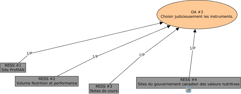 Cette carte de concepts créée avec IHMC CmapTools traite de: OA 3, RESS #3 Notes de cours I/P OA #3 Choisir judicieusement les instruments., RESS #2 Volume Nutrition et performance I/P OA #3 Choisir judicieusement les instruments., RESS #4 Sites du gouvernement canadien des valeurs nutritives I/P OA #3 Choisir judicieusement les instruments., RESS #1 Site ProfilAN I/P OA #3 Choisir judicieusement les instruments.