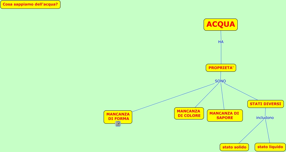 Questa Cmap, creata con IHMC CmapTools, contiene informazioni relative a: acqua9, STATI DIVERSI includono stato solido, STATI DIVERSI includono stato liquido, PROPRIETA' SONO STATI DIVERSI, PROPRIETA' SONO MANCANZA DI SAPORE, ACQUA HA PROPRIETA', PROPRIETA' SONO MANCANZA DI COLORE, PROPRIETA' SONO MANCANZA DI FORMA
