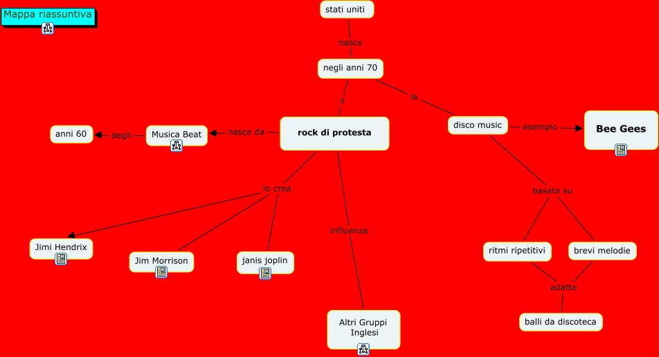 Questa Cmap, creata con IHMC CmapTools, contiene informazioni relative a: L58 P1 Anni 70 USA, ritmi ripetitivi adatte balli da discoteca, disco music basata su ritmi ripetitivi, negli anni 70 la disco music, rock di protesta influenza Altri Gruppi Inglesi, rock di protesta lo crea janis joplin, rock di protesta nasce da Musica Beat, rock di protesta lo crea Jimi Hendrix, Musica Beat degli anni 60, rock di protesta lo crea Jim Morrison, disco music basata su brevi melodie, negli anni 70 il rock di protesta, brevi melodie adatte balli da discoteca, disco music esempio Bee Gees, stati uniti nasce negli anni 70