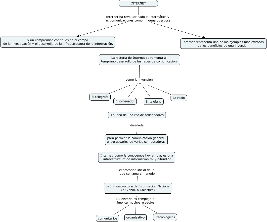 Este Cmap, tiene información relacionada con: Historia de el internet, INTERNET Internet ha revolucionado la informática y las comunicaciones como ninguna otra cosa. Internet representa uno de los ejemplos más exitosos de los beneficios de una inversión, INTERNET Internet ha revolucionado la informática y las comunicaciones como ninguna otra cosa. y un compromiso continuos en el campo de la investigación y el desarrollo de la infraestructura de la información., La historia de Internet se remonta al temprano desarrollo de las redes de comunicación. como la invencion de El telefano, La Infraestructura de Información Nacional (o Global, o Galáctica) Su historia es compleja e implica muchos aspectos tecnológicos, La idea de una red de ordenadores diseñada para permitir la comunicación general entre usuarios de varias computadoras, La historia de Internet se remonta al temprano desarrollo de las redes de comunicación. como la invencion de El telegrafo, La Infraestructura de Información Nacional (o Global, o Galáctica) Su historia es compleja e implica muchos aspectos organizativo, Internet, como la conocemos hoy en día, es una infraestructura de información muy difundida el prototipo inicial de lo que se llama a menudo La Infraestructura de Información Nacional (o Global, o Galáctica), La Infraestructura de Información Nacional (o Global, o Galáctica) Su historia es compleja e implica muchos aspectos comunitarios, La historia de Internet se remonta al temprano desarrollo de las redes de comunicación. como la invencion de El ordenador, La historia de Internet se remonta al temprano desarrollo de las redes de comunicación. como la invencion de La radio