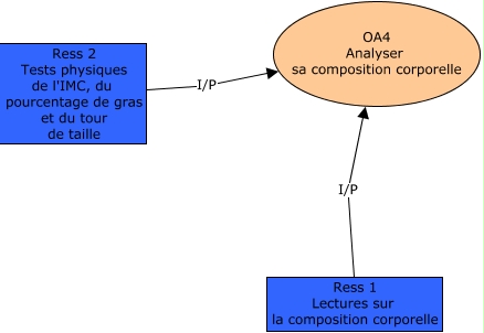 This Concept Map, created with IHMC CmapTools, has information related to: OA 3.4, Ress 1 Lectures sur la composition corporelle I/P OA4 Analyser sa composition corporelle, Ress 2 Tests physiques de l'IMC, du pourcentage de gras et du tour de taille I/P OA4 Analyser sa composition corporelle