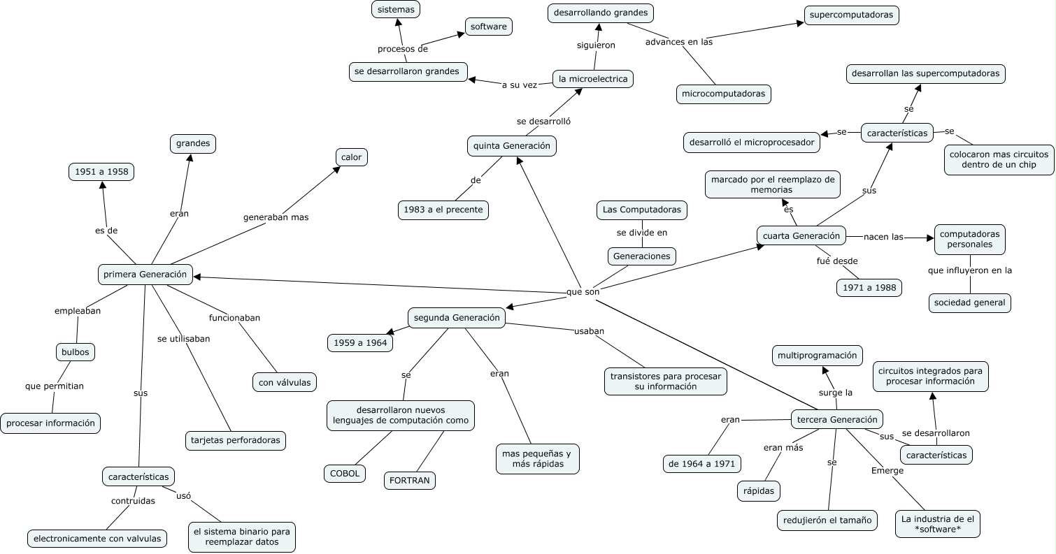 Este Cmap, tiene información relacionada con: generaciones de la computadoras, Generaciones que son segunda Generación, tercera Generación eran más rápidas, cuarta Generación sus características, primera Generación sus características, desarrollaron nuevos lenguajes de computación como Y FORTRAN, segunda Generación de 1959 a 1964, se desarrollaron grandes procesos de sistemas, Generaciones que son quinta Generación, características se desarrollan las supercomputadoras, quinta Generación de 1983 a el precente, primera Generación funcionaban con válvulas, segunda Generación se desarrollaron nuevos lenguajes de computación como, desarrollaron nuevos lenguajes de computación como entre COBOL, segunda Generación eran mas pequeñas y más rápidas, tercera Generación sus características, desarrollando grandes advances en las microcomputadoras, cuarta Generación es marcado por el reemplazo de memorias, bulbos que permitian procesar información, cuarta Generación fué desde 1971 a 1988, la microelectrica siguieron desarrollando grandes
