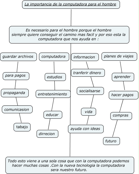 This Concept Map, created with IHMC CmapTools, has information related to: Untitled 1(mapa conseptual Mercadel SONORA), informacion vida ayuda con ideas, planes de viajes hacer pagos futuro, guardar archivos propaganda tabajo, La importancia de la computadora para el hombre es necesario Todo esto viene a una sola cosa que con la computadora podemos hacer muchas cosas .Con la nueva tecnologia la computadora sera nuestro futuro., computadora entretenimiento dirrecion