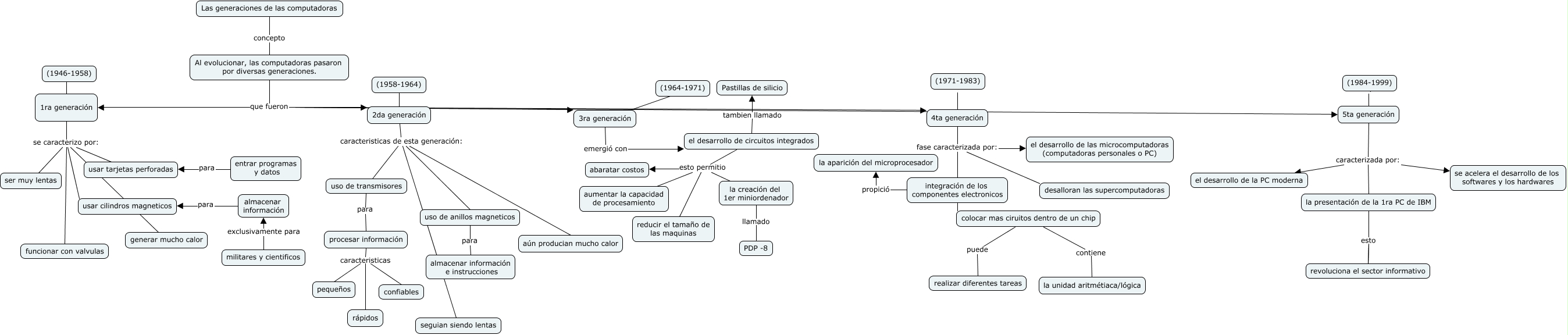 Este Cmap, tiene información relacionada con: Las generaciones de las computadoras, integración de los componentes electronicos propició la aparición del microprocesador, 4ta generación fase caracterizada por: desalloran las supercomputadoras, 2da generación (1958-1964), entrar programas y datos para usar tarjetas perforadas, procesar información caracteristicas rápidos, 4ta generación fase caracterizada por: el desarrollo de las microcomputadoras (computadoras personales o PC), el desarrollo de circuitos integrados esto permitio reducir el tamaño de las maquinas, 3ra generación (1964-1971), procesar información caracteristicas pequeños, Al evolucionar, las computadoras pasaron por diversas generaciones. que fueron 1ra generación, 2da generación caracteristicas de esta generación: seguian siendo lentas, 2da generación caracteristicas de esta generación: uso de transmisores, 4ta generación fase caracterizada por: integración de los componentes electronicos, Al evolucionar, las computadoras pasaron por diversas generaciones. que fueron 2da generación, Al evolucionar, las computadoras pasaron por diversas generaciones. que fueron 5ta generación, 2da generación caracteristicas de esta generación: aún producian mucho calor, uso de transmisores para procesar información, 1ra generación se caracterizo por: usar tarjetas perforadas, procesar información caracteristicas confiables, la creación del 1er miniordenador llamado PDP -8