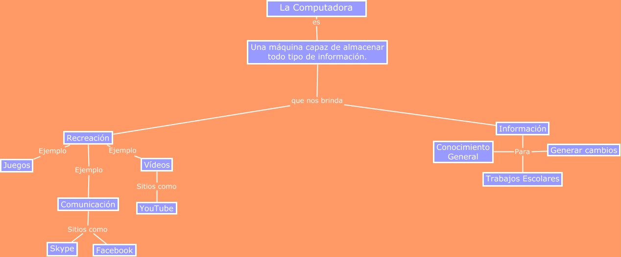 Este Cmap, tiene información relacionada con: La Computadora, Vídeos Sitios como YouTube, Comunicación Sitios como Facebook, Una máquina capaz de almacenar todo tipo de información. que nos brinda Recreación, Comunicación Sitios como Skype, Información Para Conocimiento General, Recreación Ejemplo Vídeos, Recreación Ejemplo Juegos, La Computadora es Una máquina capaz de almacenar todo tipo de información., Información Para Generar cambios, Información Para Trabajos Escolares, Recreación Ejemplo Comunicación, Una máquina capaz de almacenar todo tipo de información. que nos brinda Información