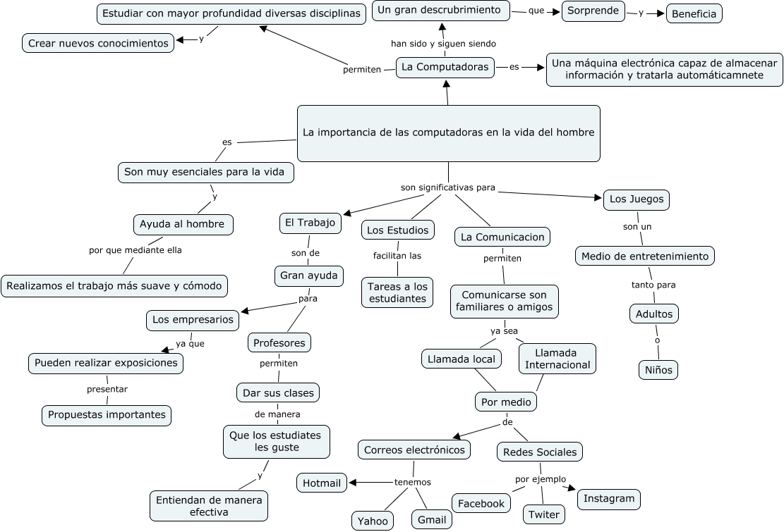 Este Cmap, tiene información relacionada con: yaneliis, Dar sus clases de manera Que los estudiates les guste, Los Estudios facilitan las Tareas a los estudiantes, Profesores permiten Dar sus clases, Redes Sociales por ejemplo Instagram, La Comunicacion permiten Comunicarse son familiares o amigos, Que los estudiates les guste y Entiendan de manera efectiva, Llamada local ???? Por medio, La importancia de las computadoras en la vida del hombre ???? La Computadoras, La importancia de las computadoras en la vida del hombre son significativas para Los Juegos, Sorprende y Beneficia, Un gran descrubrimiento que Sorprende, Redes Sociales por ejemplo Facebook, Son muy esenciales para la vida y Ayuda al hombre, El Trabajo son de Gran ayuda, La Computadoras han sido y siguen siendo Un gran descrubrimiento, Llamada Internacional ???? Por medio, Estudiar con mayor profundidad diversas disciplinas y Crear nuevos conocimientos, Por medio de Redes Sociales, Gran ayuda para Los empresarios, Correos electrónicos tenemos Yahoo