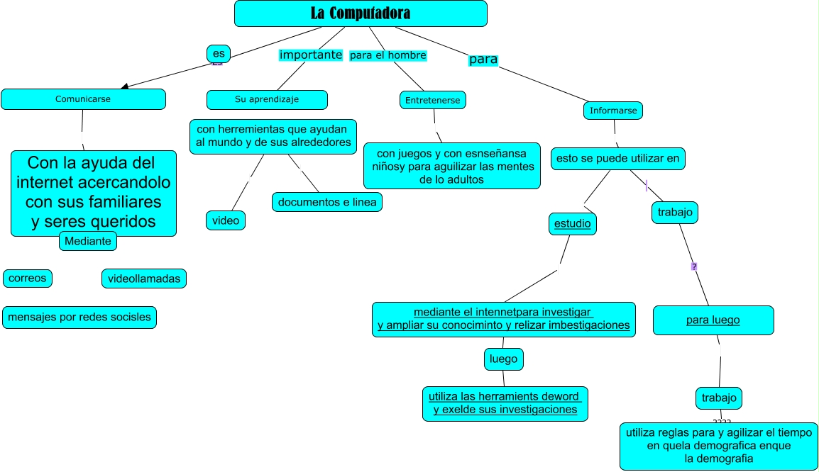 Este Cmap, tiene información relacionada con: La computadora, estudio mediante el intennetpara investigar y ampliar su conociminto y relizar imbestigaciones, Comunicarse Con la ayuda del internet acercandolo con sus familiares y seres queridos, La Computadora Es Comunicarse, para luego trabajo, mediante el intennetpara investigar y ampliar su conociminto y relizar imbestigaciones utiliza las herramients deword y exelde sus investigaciones, Entretenerse con juegos y con esnseñansa niñosy para aguilizar las mentes de lo adultos, La Computadora importante Su aprendizaje, La Computadora para Informarse, con herremientas que ayudan al mundo y de sus alrededores video, con herremientas que ayudan al mundo y de sus alrededores documentos e linea, Informarse esto se puede utilizar en, Con la ayuda del internet acercandolo con sus familiares y seres queridos ???? Mediante, esto se puede utilizar en trabajo, esto se puede utilizar en estudio, trabajo ???? utiliza reglas para y agilizar el tiempo en quela demografica enque la demografia, trabajo ? para luego, La Computadora para el hombre Entretenerse