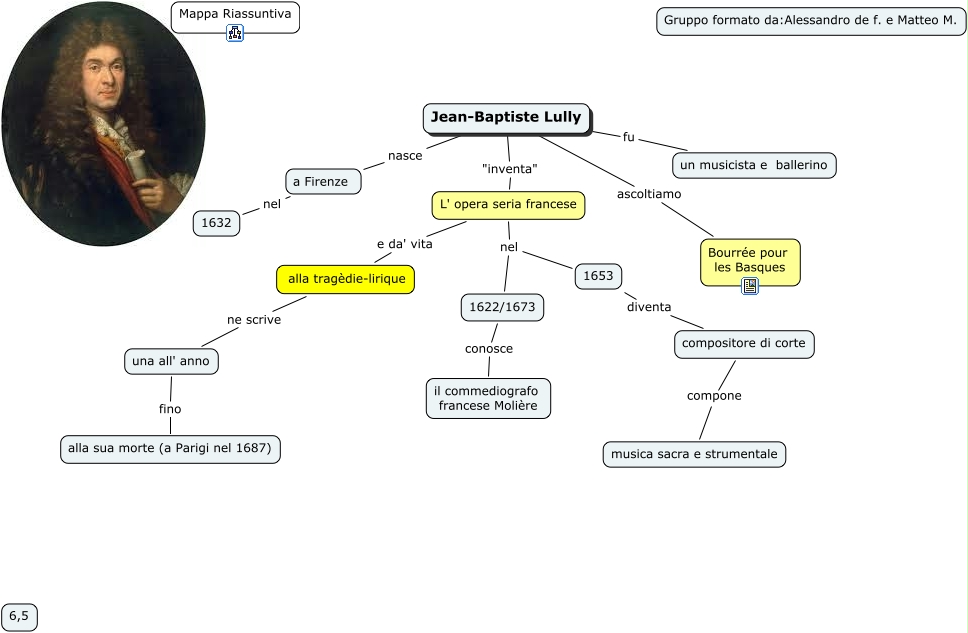 Questa Cmap, creata con IHMC CmapTools, contiene informazioni relative a: L12 Jean Baptiste Lully, Jean-Baptiste Lully ascoltiamo Bourrée pour les Basques, compositore di corte compone musica sacra e strumentale, L' opera seria francese e da' vita alla tragèdie-lirique, a Firenze nel 1632, Jean-Baptiste Lully "inventa" L' opera seria francese, L' opera seria francese nel 1622/1673, una all' anno fino alla sua morte (a Parigi nel 1687), alla tragèdie-lirique ne scrive una all' anno, L' opera seria francese nel 1653, Jean-Baptiste Lully fu un musicista e ballerino, 1622/1673 conosce il commediografo francese Molière, 1653 diventa compositore di corte, Jean-Baptiste Lully nasce a Firenze