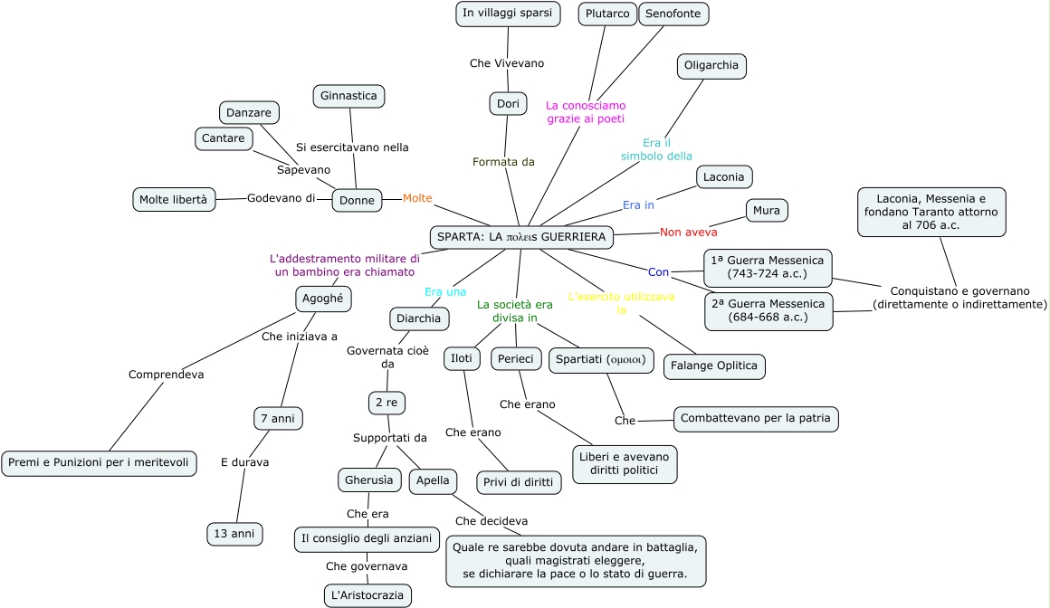 Questa Cmap, creata con IHMC CmapTools, contiene informazioni relative a: Sparta la poleis guerriera, SPARTA: LA πολειs GUERRIERA L'esercito utilizzava la Falange Oplitica, Donne Si esercitavano nella Ginnastica, SPARTA: LA πολειs GUERRIERA La società era divisa in Iloti, SPARTA: LA πολειs GUERRIERA Con 2ª Guerra Messenica (684-668 a.c.), SPARTA: LA πολειs GUERRIERA La società era divisa in Perieci, 2 re Supportati da Gherusìa, 2 re Supportati da Apella, Donne Godevano di Molte libertà, SPARTA: LA πολειs GUERRIERA Non aveva Mura, SPARTA: LA πολειs GUERRIERA Era in Laconia, SPARTA: LA πολειs GUERRIERA Era una Diarchia, Perieci Che erano Liberi e avevano diritti politici, Dori Che Vivevano In villaggi sparsi, Gherusìa Che era Il consiglio degli anziani, Diarchia Governata cioè da 2 re, SPARTA: LA πολειs GUERRIERA La conosciamo grazie ai poeti Senofonte, Iloti Che erano Privi di diritti, SPARTA: LA πολειs GUERRIERA Era il simbolo della Oligarchia, Spartiati (ομοιοι) Che Combattevano per la patria, SPARTA: LA πολειs GUERRIERA L'addestramento militare di un bambino era chiamato Agoghé