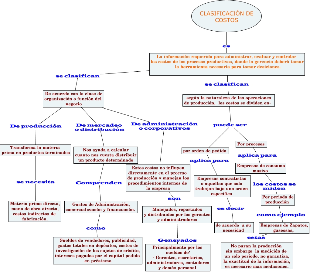 Este Cmap, tiene información relacionada con: Clasificaion de costos (2).cmap, Empresas de Zapatos, gaseosas, estas No paran la producción sin embargo la medición de un solo periodo, no garantiza, la exactitud de la información, es necesario mas mediciones., Estos costos no influyen directamente en el proceso de producción y manejan los procedimientos internos de la empresa son Manejados, reportados y distribuidos por los gerentes y administradores, De acuerdo con la clase de organización o función del negocio De mercadeo o distribución Nos ayuda a calcular cuanto nos cuesta distribuir un producto determinado, Empresas contratistas o aquellas que solo trabajan bajo una orden especifica es decir de acuerdo a su necesidad, CLASIFICACIÓN DE COSTOS es La información requerida para administrar, evaluar y controlar los costos de los procesos productivos, donde la gerencia deberá tomar la herramienta necesaria para tomar desiciones., De acuerdo con la clase de organización o función del negocio De administración o corporativos Estos costos no influyen directamente en el proceso de producción y manejan los procedimientos internos de la empresa, según la naturaleza de las operaciones de producción, los costos se dividen en: puede ser por orden de pedido, La información requerida para administrar, evaluar y controlar los costos de los procesos productivos, donde la gerencia deberá tomar la herramienta necesaria para tomar desiciones. se clasifican De acuerdo con la clase de organización o función del negocio, La información requerida para administrar, evaluar y controlar los costos de los procesos productivos, donde la gerencia deberá tomar la herramienta necesaria para tomar desiciones. se clasifican según la naturaleza de las operaciones de producción, los costos se dividen en:, Transforma la materia prima en productos terminados se necesita Materia prima directa, mano de obra directa, costos indirectos de fabricación., Por periodo de producción como ejemplo Empresas de Zapatos, gaseosas,, Nos ayuda a calcular cuanto nos cuesta distribuir un producto determinado Comprenden Gastos de Administración, comercialización y financiación., Empresas de consumo masivo los costos se miden Por periodo de producción, según la naturaleza de las operaciones de producción, los costos se dividen en: puede ser Por procesos, Gastos de Administración, comercialización y financiación. como Sueldos de vendedores, publicidad, gastos totales en depósitos, costos de investigación de los sujetos de crédito, intereses pagados por el capital pedido en préstamo, Por procesos aplica para Empresas de consumo masivo, De acuerdo con la clase de organización o función del negocio De producción Transforma la materia prima en productos terminados, Manejados, reportados y distribuidos por los gerentes y administradores Generados Principalmente por los sueldos de: - Gerentes, secretarios, administradores, contadores y demás personal, por orden de pedido aplica para Empresas contratistas o aquellas que solo trabajan bajo una orden especifica