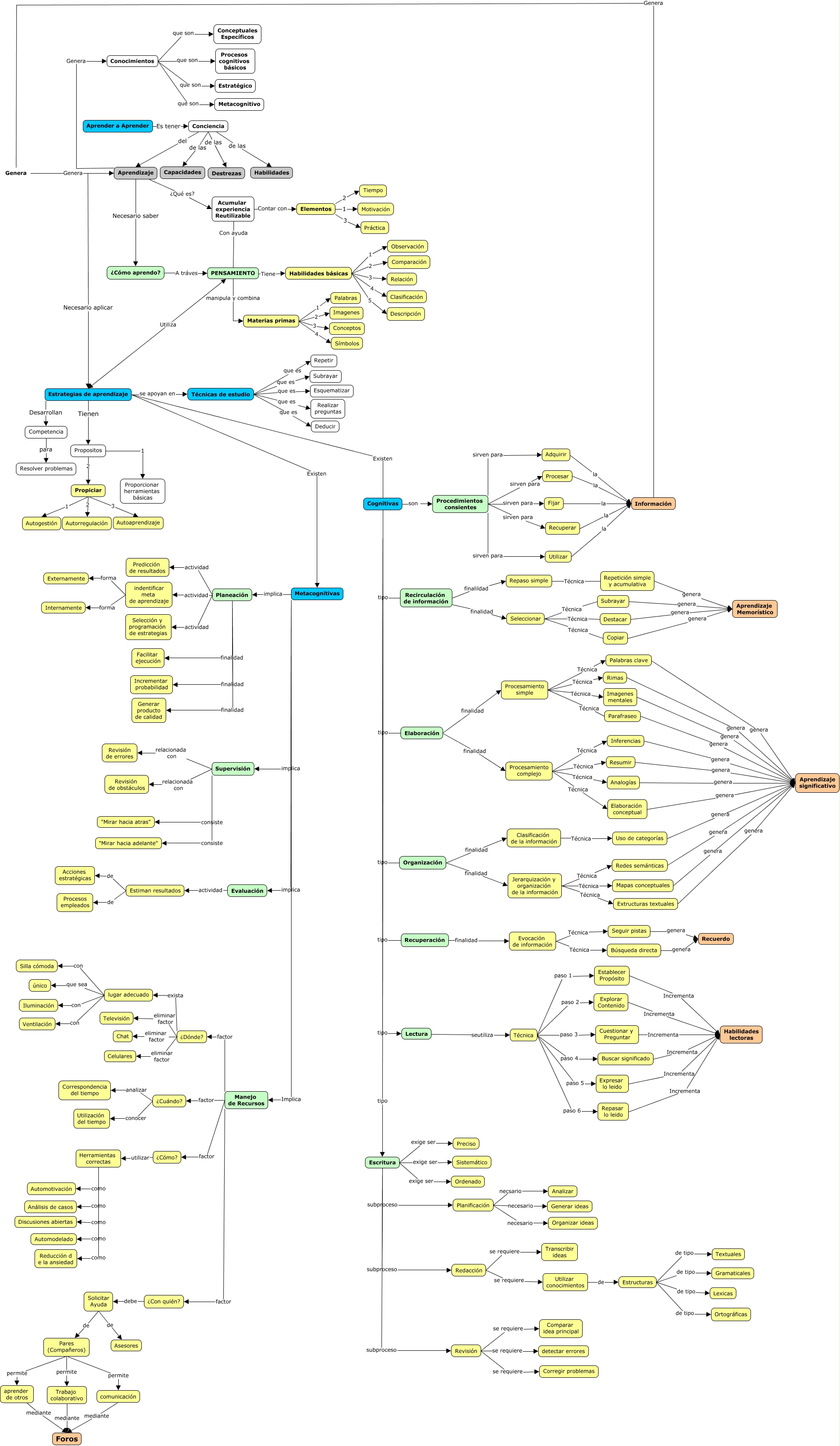 Este Cmap, tiene información relacionada con: EstrategiasAprendizaje, Repaso simple Técnica Repetición simple y acumulativa, Resumir genera Aprendizaje significativo, Manejo de Recursos factor ¿Con quién?, Estructuras de tipo Ortográficas, ¿Dónde? eliminar factor Televisión, Escritura exige ser Ordenado, Conciencia de las Capacidades, lugar adecuado con Silla cómoda, Estiman resultados de Acciones estratégicas, Seguir pistas genera Recuerdo, Planeación finalidad Incrementar probabilidad, Procesamiento simple Técnica Palabras clave, Recirculación de información finalildad Repaso simple, Propositos 1 Proporcionar herramientas básicas, Supervisión consiste "Mirar hacia atras", Procesar la Información, Redacción se requiere Utilizar conocimientos, Trabajo colaborativo mediante Foros, Técnica paso 6 Repasar lo leido, Procedimientos consientes sirven para Recuperar
