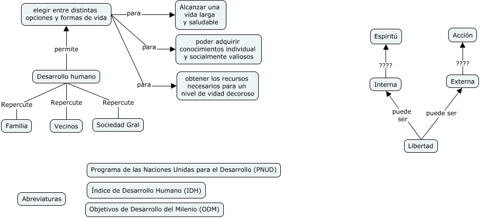 Este Cmap, tiene información relacionada con: DHUnidad1, Desarrollo humano Repercute Familia, Libertad puede ser Externa, Desarrollo humano Repercute Vecinos, Interna ???? Espiritú, elegir entre distintas opciones y formas de vida para Alcanzar una vida larga y saludable, elegir entre distintas opciones y formas de vida para obtener los recursos necesarios para un nivel de vidad decoroso, Externa ???? Acción, Desarrollo humano Repercute Sociedad Gral, Desarrollo humano permite elegir entre distintas opciones y formas de vida, elegir entre distintas opciones y formas de vida para poder adquirir conocimientos individual y socialmente valiosos, Libertad puede ser Interna