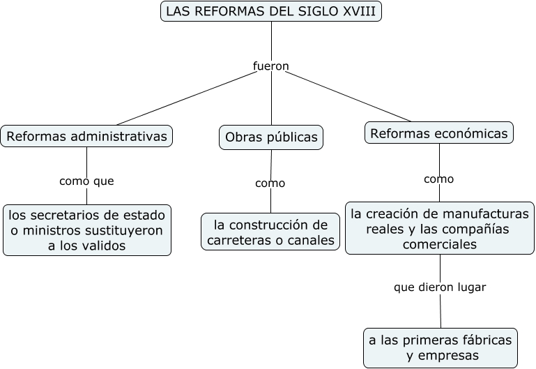 Este Cmap, tiene información relacionada con: Las reformas del siglo XVIII, Reformas económicas como la creación de manufacturas reales y las compañías comerciales, Reformas administrativas como que los secretarios de estado o ministros sustituyeron a los validos, LAS REFORMAS DEL SIGLO XVIII fueron Reformas administrativas, LAS REFORMAS DEL SIGLO XVIII fueron Obras públicas, la creación de manufacturas reales y las compañías comerciales que dieron lugar a las primeras fábricas y empresas, Obras públicas como la construcción de carreteras o canales, LAS REFORMAS DEL SIGLO XVIII fueron Reformas económicas