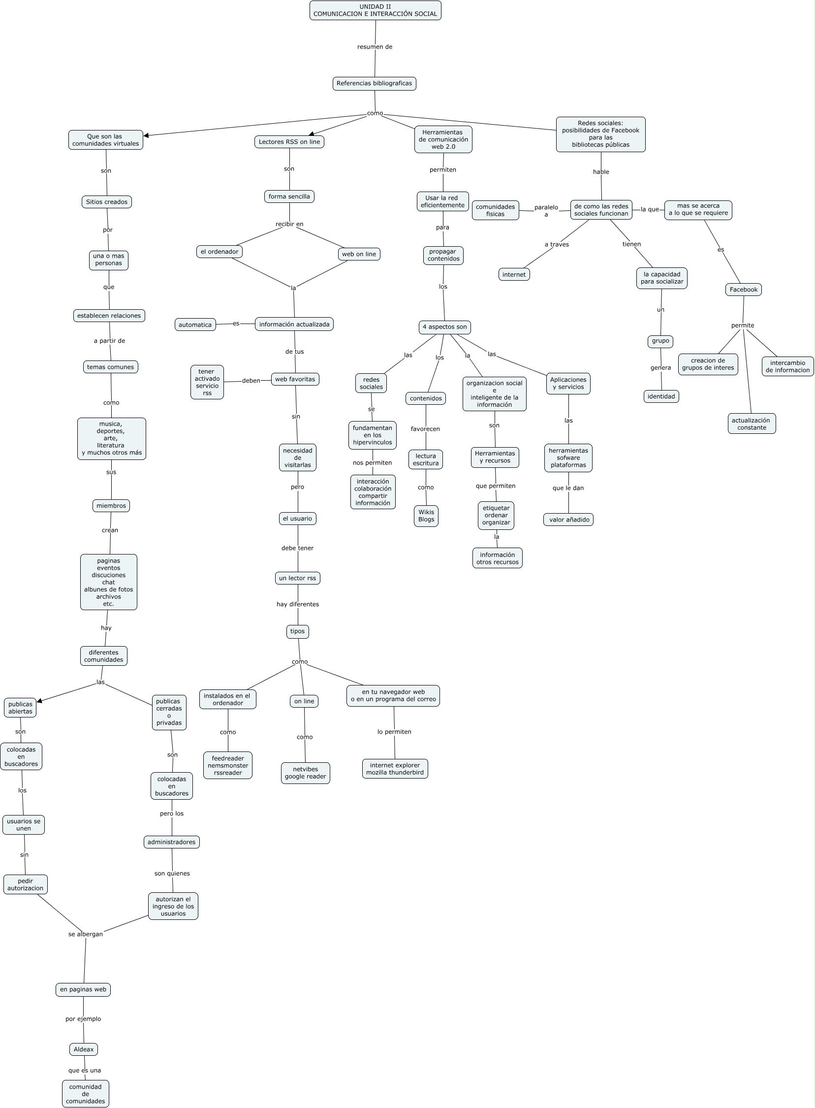 Este Cmap, tiene información relacionada con: Unidad 2, diferentes comunidades las publicas cerradas o privadas, tipos como instalados en el ordenador, miembros crean paginas eventos discuciones chat albunes de fotos archivos etc., etiquetar ordenar organizar la información otros recursos, Aplicaciones y servicios las herramientas sofware plataformas, automatica es información actualizada, de como las redes sociales funcionan paralelo a comunidades fisicas, Referencias bibliograficas como Que son las comunidades virtuales, Que son las comunidades virtuales son Sitios creados, 4 aspectos son la organizacion social e inteligente de la información, establecen relaciones a partir de temas comunes, el ordenador la información actualizada, musica, deportes, arte, literatura y muchos otros más sus miembros, autorizan el ingreso de los usuarios se albergan en paginas web, 4 aspectos son las Aplicaciones y servicios, de como las redes sociales funcionan a traves internet, publicas abiertas son colocadas en buscadores, Lectores RSS on line son forma sencilla, tipos como en tu navegador web o en un programa del correo, web on line la información actualizada