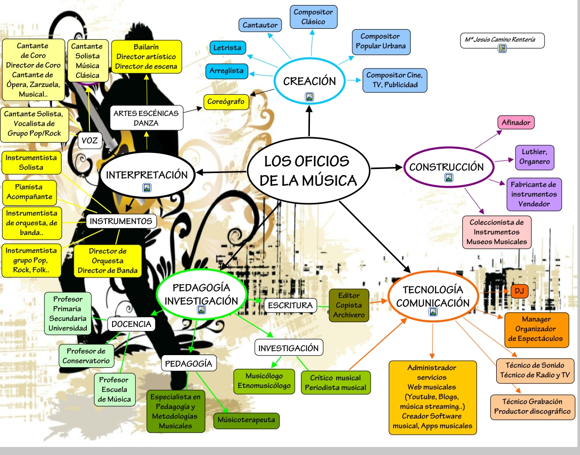 Este Cmap, tiene información relacionada con: oficios-musicales, INVESTIGACIÓN ???? Musicólogo Etnomusicólogo, Editor Copista Archivero TECNOLOGÍA COMUNICACIÓN Manager Organizador de Espectáculos, Crítico musical Periodista musical TECNOLOGÍA COMUNICACIÓN Técnico Grabación Productor discográfico, LOS OFICIOS DE LA MÚSICA TECNOLOGÍA COMUNICACIÓN Manager Organizador de Espectáculos, LOS OFICIOS DE LA MÚSICA INTERPRETACIÓN VOZ, LOS OFICIOS DE LA MÚSICA CONSTRUCCIÓN Afinador, DOCENCIA ???? Profesor Primaria Secundaria Universidad, LOS OFICIOS DE LA MÚSICA PEDAGOGÍA INVESTIGACIÓN INVESTIGACIÓN, LOS OFICIOS DE LA MÚSICA INTERPRETACIÓN ARTES ESCÉNICAS DANZA, INSTRUMENTOS ???? Instrumentista grupo Pop, Rock, Folk.., LOS OFICIOS DE LA MÚSICA PEDAGOGÍA INVESTIGACIÓN DOCENCIA, PEDAGOGÍA ???? Especialista en Pedagogía y Metodologías Musicales, LOS OFICIOS DE LA MÚSICA CONSTRUCCIÓN Luthier, Organero, LOS OFICIOS DE LA MÚSICA TECNOLOGÍA COMUNICACIÓN Técnico Grabación Productor discográfico, DOCENCIA ???? Profesor Escuela de Música, LOS OFICIOS DE LA MÚSICA TECNOLOGÍA COMUNICACIÓN DJ, LOS OFICIOS DE LA MÚSICA TECNOLOGÍA COMUNICACIÓN Técnico de Sonido Técnico de Radio y TV, ARTES ESCÉNICAS DANZA ???? Coreógrafo, LOS OFICIOS DE LA MÚSICA CREACIÓN Cantautor, LOS OFICIOS DE LA MÚSICA CREACIÓN Coreógrafo
