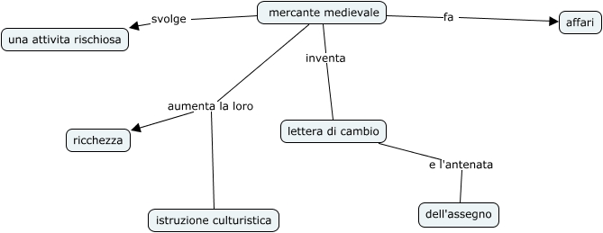 Questa Cmap, creata con IHMC CmapTools, contiene informazioni relative a: samantha storia i mercanti, mercante medievale fa affari, mercante medievale aumenta la loro istruzione culturistica, lettera di cambio e l'antenata dell'assegno, mercante medievale inventa lettera di cambio, mercante medievale aumenta la loro ricchezza, mercante medievale svolge una attivita rischiosa