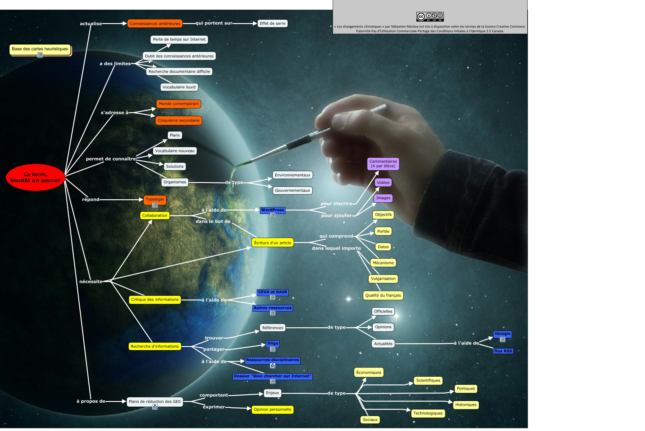Cette carte de concepts créée avec IHMC CmapTools traite de: Carte conceptuelle, Plans de réduction des GES exprimer Opinion personnelle, Actualités à l'aide de flux RSS, La terre, bientôt un sauna? a des limites Perte de temps sur Internet, La terre, bientôt un sauna? nécessite Recherche d'informations, Connaissances antérieures qui portent sur Effet de serre, WordPress pour inscrire Commentaires (4 par élève), La terre, bientôt un sauna? a des limites Vocabulaire lourd, Écriture d'un article dans lequel importe Vulgarisation, La terre, bientôt un sauna? nécessite Écriture d'un article, Écriture d'un article qui comprend Portée, WordPress pour ajouter Vidéos, Recherche d'informations trouver Références, La terre, bientôt un sauna? nécessite Critique des informations, Recherche d'informations partager Diigo, Écriture d'un article qui comprend Dates, WordPress pour ajouter Images, Écriture d'un article qui comprend Objectifs, Organismes de type Gouvernementaux, Critique des informations à l'aide de Autres ressources, La terre, bientôt un sauna? permet de connaître Organismes