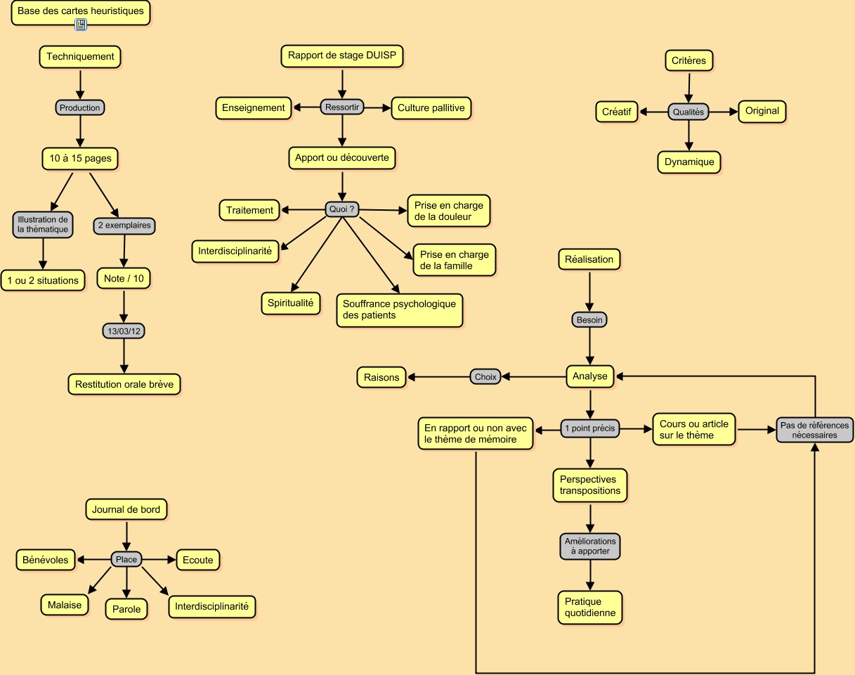 Cette carte de concepts créée avec IHMC CmapTools traite de: RapportDeStage, 10 à 15 pages 2 exemplaires Note / 10, Journal de bord Place Parole, En rapport ou non avec le thème de mémoire Pas de références nécessaires Analyse, Critères Qualités Original, Critères Qualités Créatif, Perspectives transpositions Améliorations à apporter Pratique quotidienne, Journal de bord Place Ecoute, Apport ou découverte Quoi ? Souffrance psychologique des patients, Apport ou découverte Quoi ? Prise en charge de la douleur, Analyse 1 point précis Cours ou article sur le thème, Note / 10 13/03/12 Restitution orale brève, Cours ou article sur le thème Pas de références nécessaires Analyse, Analyse 1 point précis Perspectives transpositions, Critères Qualités Dynamique, Rapport de stage DUISP Ressortir Apport ou découverte, Rapport de stage DUISP Ressortir Culture pallitive, Journal de bord Place Bénévoles, 10 à 15 pages Illustration de la thématique 1 ou 2 situations, Apport ou découverte Quoi ? Prise en charge de la famille, Analyse Choix Raisons