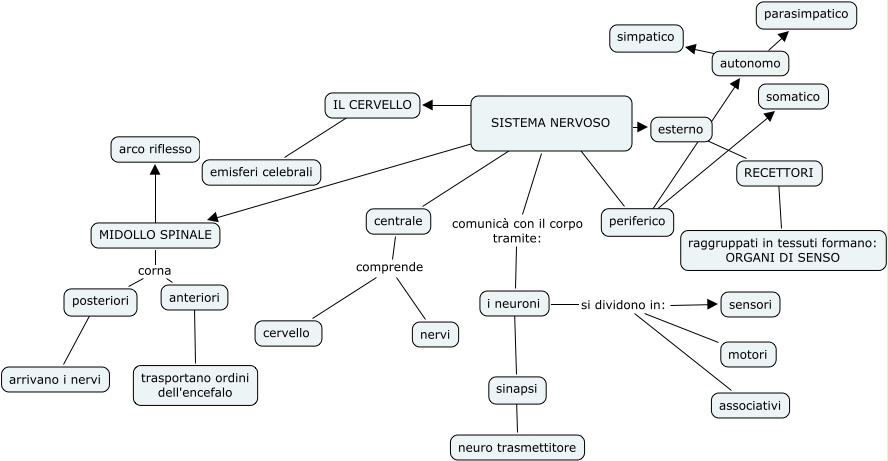 Questa Cmap, creata con IHMC CmapTools, contiene informazioni relative a: sistema nervoso, i neuroni si dividono in: sensori, SISTEMA NERVOSO ???? centrale, IL CERVELLO ???? emisferi celebrali, i neuroni ???? sinapsi, MIDOLLO SPINALE ???? arco riflesso, posteriori ???? arrivano i nervi, autonomo ???? simpatico, periferico ???? autonomo, MIDOLLO SPINALE corna anteriori, centrale comprende nervi, SISTEMA NERVOSO ???? periferico, periferico ???? somatico, centrale comprende cervello, MIDOLLO SPINALE corna posteriori, RECETTORI ???? raggruppati in tessuti formano: ORGANI DI SENSO, anteriori ???? trasportano ordini dell'encefalo, SISTEMA NERVOSO ???? IL CERVELLO, SISTEMA NERVOSO ???? MIDOLLO SPINALE, sinapsi ???? neuro trasmettitore, autonomo ???? parasimpatico