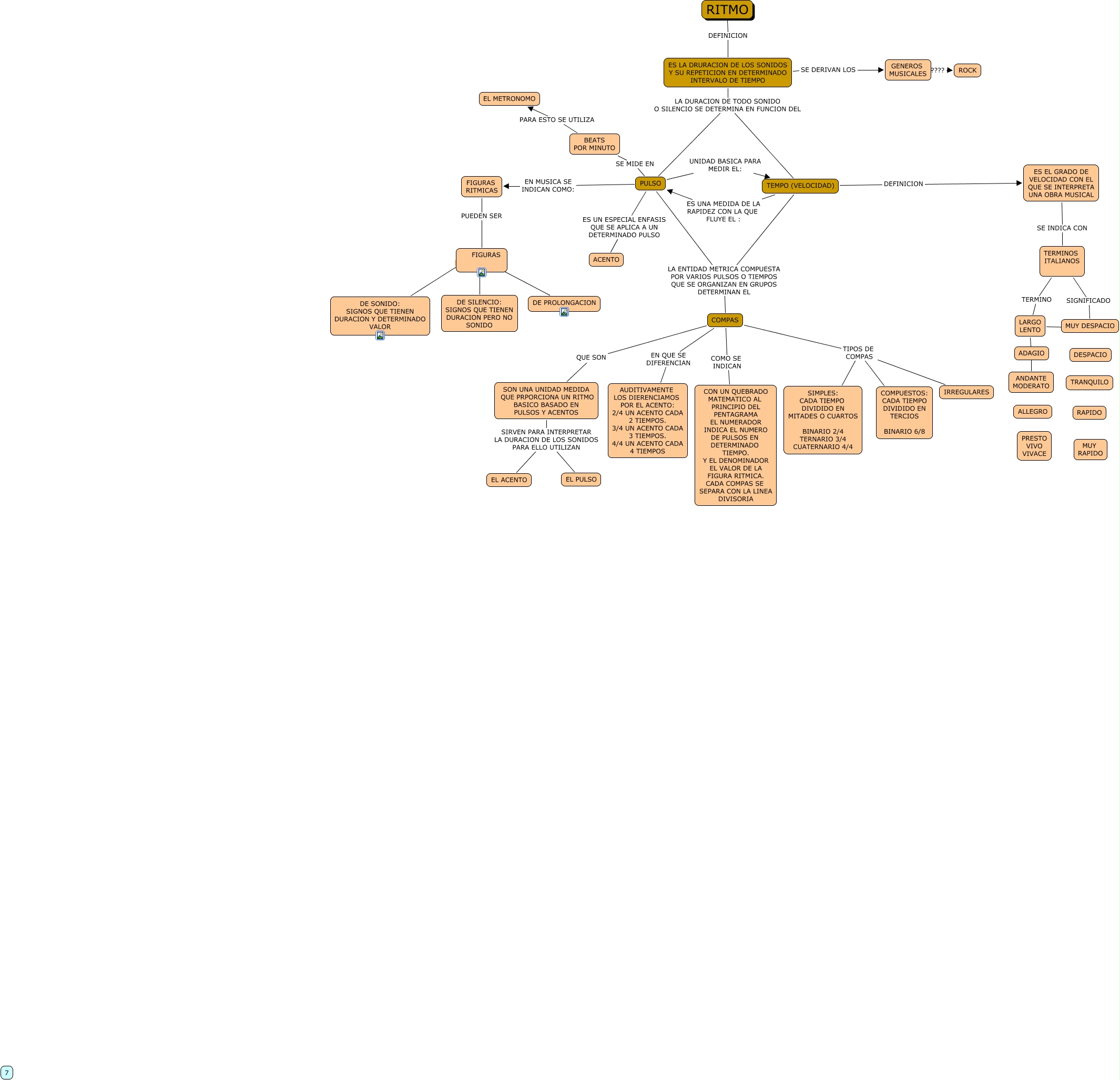 Este Cmap, tiene información relacionada con: RITMO, PULSO EN MUSICA SE INDICAN COMO: FIGURAS RITMICAS, PULSO UNIDAD BASICA PARA MEDIR EL: TEMPO (VELOCIDAD), TERMINOS ITALIANOS TERMINO LARGO LENTO, LARGO LENTO ???? MUY DESPACIO, BEATS POR MINUTO SE MIDE EN PULSO, PULSO ES UN ESPECIAL ENFASIS QUE SE APLICA A UN DETERMINADO PULSO ACENTO, FIGURAS ???? DE SONIDO: SIGNOS QUE TIENEN DURACION Y DETERMINADO VALOR, ES LA DRURACION DE LOS SONIDOS Y SU REPETICION EN DETERMINADO INTERVALO DE TIEMPO LA DURACION DE TODO SONIDO O SILENCIO SE DETERMINA EN FUNCION DEL PULSO, ANDANTE MODERATO ???? ADAGIO, GENEROS MUSICALES ???? ROCK, FIGURAS ???? DE PROLONGACION, COMPAS TIPOS DE COMPAS COMPUESTOS: CADA TIEMPO DIVIDIDO EN TERCIOS BINARIO 6/8, COMPAS COMO SE INDICAN CON UN QUEBRADO MATEMATICO AL PRINCIPIO DEL PENTAGRAMA EL NUMERADOR INDICA EL NUMERO DE PULSOS EN DETERMINADO TIEMPO. Y EL DENOMINADOR EL VALOR DE LA FIGURA RITMICA. CADA COMPAS SE SEPARA CON LA LINEA DIVISORIA, TEMPO (VELOCIDAD) DEFINICION ES EL GRADO DE VELOCIDAD CON EL QUE SE INTERPRETA UNA OBRA MUSICAL, TERMINOS ITALIANOS SIGNIFICADO MUY DESPACIO, RITMO DEFINICION ES LA DRURACION DE LOS SONIDOS Y SU REPETICION EN DETERMINADO INTERVALO DE TIEMPO, TEMPO (VELOCIDAD) LA DURACION DE TODO SONIDO O SILENCIO SE DETERMINA EN FUNCION DEL PULSO, PULSO LA ENTIDAD METRICA COMPUESTA POR VARIOS PULSOS O TIEMPOS QUE SE ORGANIZAN EN GRUPOS DETERMINAN EL COMPAS, FIGURAS ???? DE SILENCIO: SIGNOS QUE TIENEN DURACION PERO NO SONIDO, COMPAS TIPOS DE COMPAS IRREGULARES