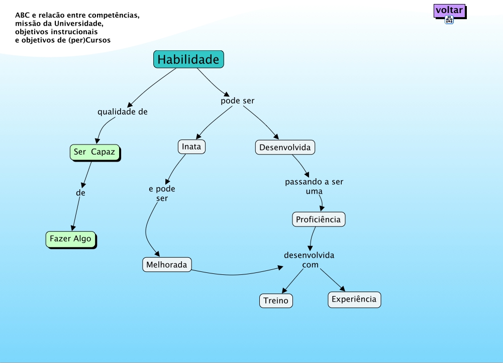 Esse mapa conceitual, produzido no IHMC CmapTools, tem a informação relacionada a: Habilidade, Melhorada desenvolvida com Experiência, Inata e pode ser Melhorada, Proficiência desenvolvida com Experiência, Habilidade pode ser Desenvolvida, Habilidade pode ser Inata, Ser Capaz de Fazer Algo, Habilidade qualidade de Ser Capaz, Desenvolvida passando a ser uma Proficiência, Proficiência desenvolvida com Treino, Melhorada desenvolvida com Treino