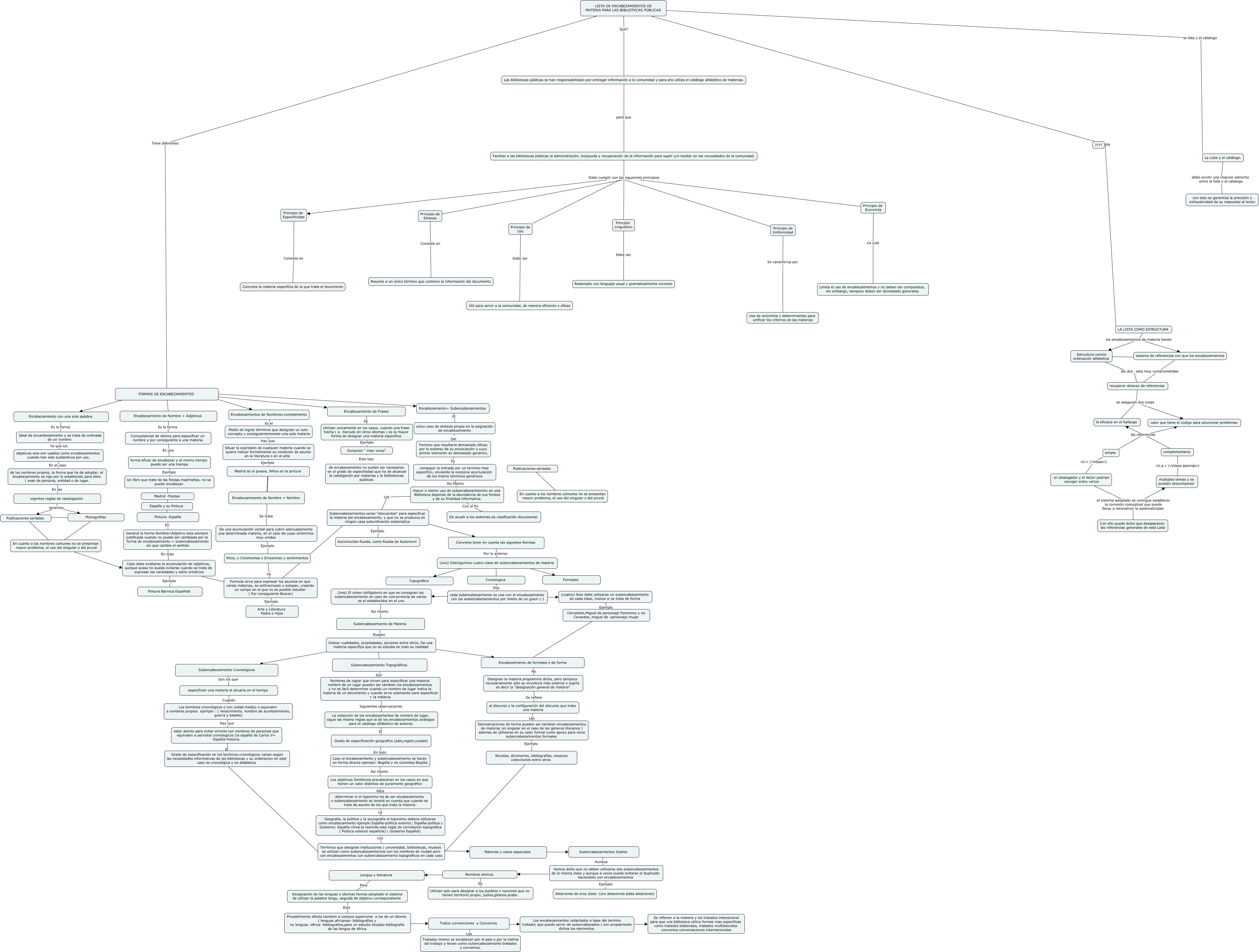 This Concept Map, created with IHMC CmapTools, has information related to: Normas para el encabezamiento de materia - Grupo 5, Indicar cualidades, propiedades, acciones entre otros, De una materia especifica que no se estudia en todo su realidad ???? Encabezamiento de formales o de forma, Publicaciones seriadas ???? En cuanto a los nombres comunes no se presentan mayor problema, el uso del singular o del prural, Subencabezamientos seran "elocuentes" para especificar la materia del encabezamiento, y que no se produzca en ningún casa subordinación sistematica ???? Conviene tener en cuenta las siguietes Normas, sistema de referencias con que los encabezamientos esta muy comprometidas recuperar atravez de referencias, Principio de Uso Debe ser Útil para servir a la comunidad, de manera eficiente y eficaz, Los objetivos Gentilicios prevaleceran en los casos en que tienen un valor distintos de puramente geográfico Para determinar si el toponimo ha de ser encabezamiento o subencabezamiento se tendrá en cuenta que cuando se trate de asunto de los que trata la historia., Ideal de encanbezamiento y se trata de ordinada de un nombre Ya que los objetivos solo son usados como encabezamientos cuando han sido sustantivos por uso., (uno) Distinguimos cuatro clase de subencabezamientos de materia ???? Formales, General la forma Nombre+Adjetivo esta siempre justificada cuando no puede ser cambiada por la forma de encabezamiento + subencabezamiento sin que cambie el sentido En todo Caso debe eviatarse la acumulación de odjetivos, aunque acaso no pueda evitarse cuando se trata de expresar las variedades y estilo artisticos, Los encabezamientos redactados a base del termino tratado( que puede servir de subencabezados ) son propiamente dichos los elementos. ???? Se refieren a la materia y los tratados intenacional para que una biblioteca utilice formas mas especificas como tratados bilaterales, tratados multilaterales convenios conversaciones internacionales, Principio de Uniformidad Debe cumplir con los siguientes principios Principio de Especificidad, complementaria «V.a.» («Véase además») multiples temas y se pueden descomponer, Geografia, la politica y la sociografia el toponimo debera utilizarse como encabezamiento ejemplo España-politica exterior; España-politica y Gobierno: España-clima.la razónde esta regla de corrotación topografica ( Politica exterior española) ( Gobierno Español) Los Terminos que designan instituciones ( universidad, blibliotecas, museos se utilizan como subencabezamientos con los nombres de ciudad pero con encabezamientos con subencabezamiento topograficos en cada caso, Subencabezamiento de Materia Pueden Indicar cualidades, propiedades, acciones entre otros, De una materia especifica que no se estudia en todo su realidad, Materias y casos especiales ???? Subencabezamientos Dobles, Grado de especificación en los terminos cronológicos varian según las necesidades informativas de las bibliotecas y su ordenacion en este caso es cronológica y no alfabetica ???? Terminos que designan instituciones ( universidad, blibliotecas, museos se utilizan como subencabezamientos con los nombres de ciudad pero con encabezamientos con subencabezamiento topograficos en cada caso, simple «V.» («Véase») el catalogador y el lector podrian escoger entre varios, FORMAS DE ENCABEZAMIENTOS ???? Encabezamiento de Frases, Subencabezamientos Dobles Aunque hemos dicho que no deben utilizarse dos subencabezamientos de la misma clase y aunque a veces puede evitarse el duplicado haciendolo con encabezamientos, conseguir la entrada por un termino mas especifico, enviando la excesiva acumulación de los mismo términos genéricos Asi Mismo mayor o menor uso de subencabezamiennto en una Biblioteca depende de la abundancia de sus fondos y de su finalidad informativa.