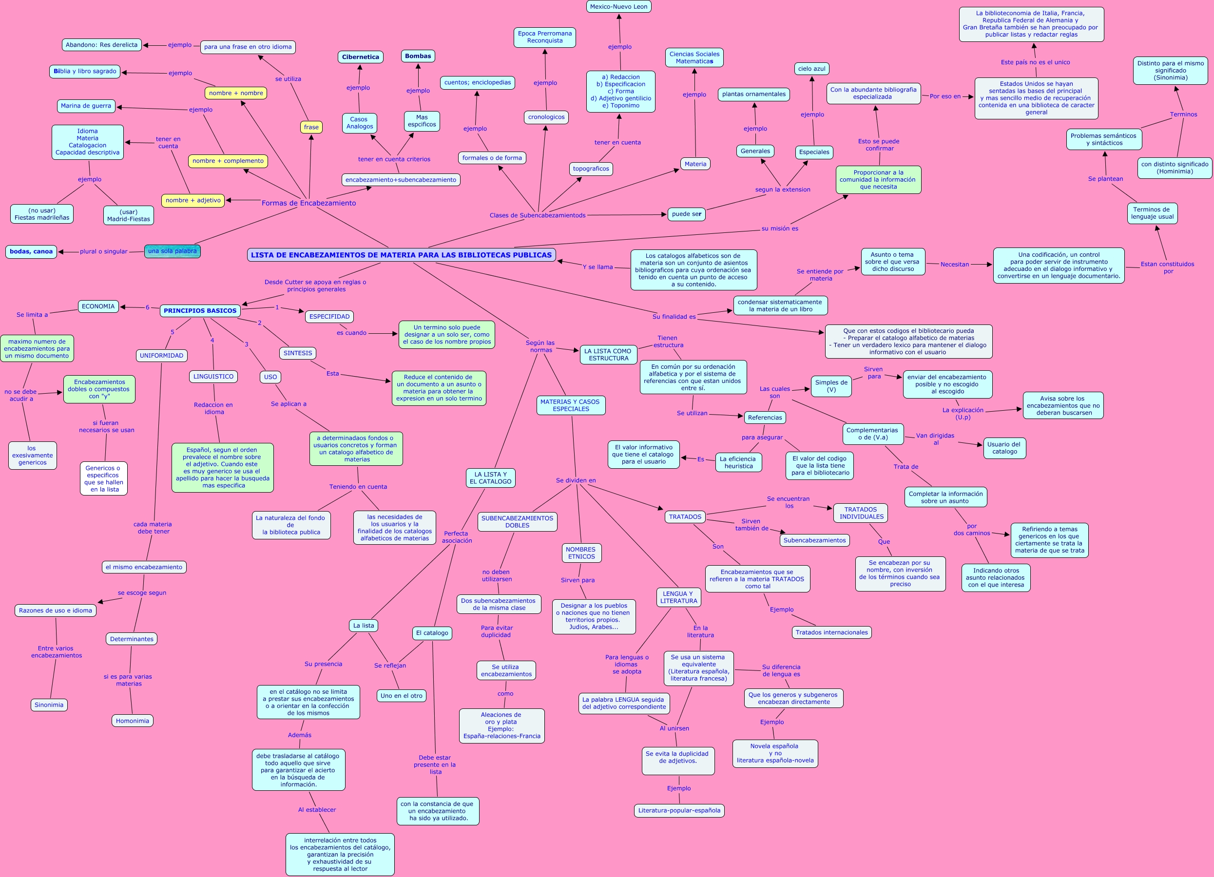 Este Cmap, tiene información relacionada con: cmap encabezamiento, frase se utiliza para una frase en otro idioma, LA LISTA Y EL CATALOGO Perfecta asociación La lista, Terminos de lenguaje usual Se plantean Problemas semánticos y sintácticos, Razones de uso e idioma Entre varios encabezamientos Sinonimia, puede ser segun la extension Generales, LISTA DE ENCABEZAMIENTOS DE MATERIA PARA LAS BIBLIOTECAS PUBLICAS Desde Cutter se apoya en reglas o principios generales PRINCIPIOS BASICOS, PRINCIPIOS BASICOS 5 UNIFORMIDAD, Completar la información sobre un asunto por dos caminos Indicando otros asunto relacionados con el que interesa, Se usa un sistema equivalente (Literatura española, literatura francesa) Al unirsen Se evita la duplicidad de adjetivos., PRINCIPIOS BASICOS 2 SINTESIS, Idioma Materia Catalogacion Capacidad descriptiva ejemplo (no usar) Fiestas madrileñas, Los catalogos alfabeticos son de materia son un conjunto de asientos bibliograficos para cuya ordenación sea tenido en cuenta un punto de acceso a su contenido. Y se llama LISTA DE ENCABEZAMIENTOS DE MATERIA PARA LAS BIBLIOTECAS PUBLICAS, maximo numero de encabezamientos para un mismo documento no se debe acudir a los exesivamente genericos, Se utiliza encabezamientos como Aleaciones de oro y plata Ejemplo: España-relaciones-Francia, a determinadaos fondos o usuarios concretos y forman un catalogo alfabetico de materias Teniendo en cuenta las necesidades de los usuarios y la finalidad de los catalogos alfabeticos de materias, USO Se aplican a a determinadaos fondos o usuarios concretos y forman un catalogo alfabetico de materias, LISTA DE ENCABEZAMIENTOS DE MATERIA PARA LAS BIBLIOTECAS PUBLICAS Su finalidad es condensar sistematicamente la materia de un libro, LISTA DE ENCABEZAMIENTOS DE MATERIA PARA LAS BIBLIOTECAS PUBLICAS Según las normas MATERIAS Y CASOS ESPECIALES, ESPECIFIDAD es cuando Un termino solo puede designar a un solo ser, como el caso de los nombre propios, LISTA DE ENCABEZAMIENTOS DE MATERIA PARA LAS BIBLIOTECAS PUBLICAS Formas de Encabezamiento nombre + nombre