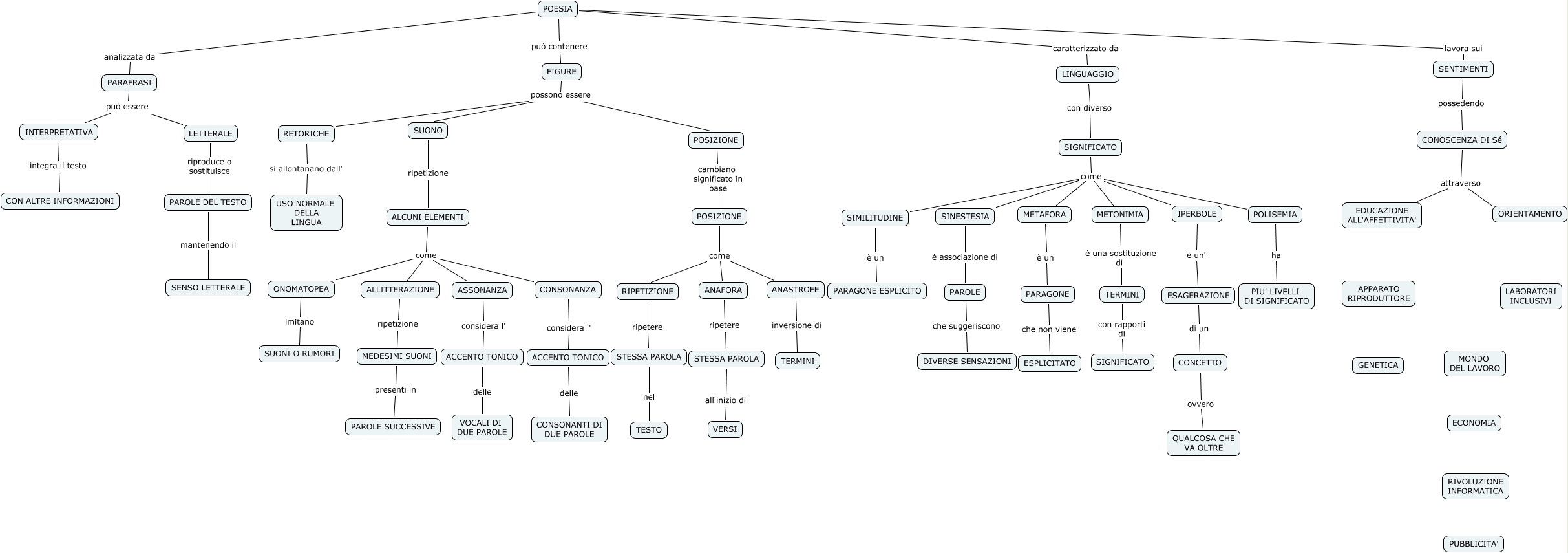 Questa Cmap, creata con IHMC CmapTools, contiene informazioni relative a: POESIA-PIU_NLSC, MEDESIMI SUONI presenti in PAROLE SUCCESSIVE, ACCENTO TONICO delle CONSONANTI DI DUE PAROLE, SINESTESIA è associazione di PAROLE, SIGNIFICATO come IPERBOLE, USO NORMALE DELLA LINGUA si allontanano dall' RETORICHE, LINGUAGGIO con diverso SIGNIFICATO, ACCENTO TONICO delle VOCALI DI DUE PAROLE, ASSONANZA considera l' ACCENTO TONICO, FIGURE possono essere SUONO, POESIA caratterizzato da LINGUAGGIO, IPERBOLE è un' ESAGERAZIONE, STESSA PAROLA nel TESTO, POSIZIONE come RIPETIZIONE, ESAGERAZIONE di un CONCETTO, INTERPRETATIVA integra il testo CON ALTRE INFORMAZIONI, POSIZIONE come ANAFORA, SIMILITUDINE è un PARAGONE ESPLICITO, POSIZIONE come ANASTROFE, SIGNIFICATO come POLISEMIA, PAROLE che suggeriscono DIVERSE SENSAZIONI