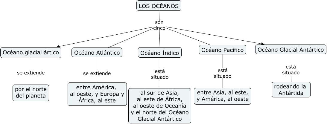 Este Cmap, tiene información relacionada con: Los océanos, Océano Glacial Antártico está situado rodeando la Antártida, Océano Índico está situado al sur de Asia, al este de África, al oeste de Oceanía y el norte del Océano Glacial Antártico, Océano glacial ártico se extiende por el norte del planeta, LOS OCÉANOS son cinco Océano Pacífico, LOS OCÉANOS son cinco Océano Índico, LOS OCÉANOS son cinco Océano Glacial Antártico, LOS OCÉANOS son cinco Océano glacial ártico, LOS OCÉANOS son cinco Océano Atlántico, Océano Pacífico está situado entre Asia, al este, y América, al oeste, Océano Atlántico se extiende entre América, al oeste, y Europa y África, al este