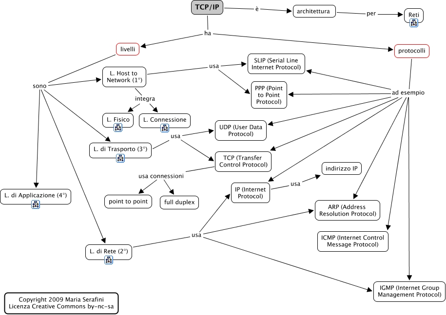 Questa Cmap, creata con IHMC CmapTools, contiene informazioni relative a: TCP-IP, TCP/IP è architettura, TCP (Transfer Control Protocol) usa connessioni full duplex, L. di Rete (2°) usa IP (Internet Protocol), L. Host to Network (1°) integra L. Fisico, protocolli ad esempio IP (Internet Protocol), L. Host to Network (1°) usa PPP (Point to Point Protocol), architettura per Reti, protocolli ad esempio TCP (Transfer Control Protocol), TCP/IP ha livelli, livelli sono L. Host to Network (1°), livelli sono L. di Applicazione (4°), TCP (Transfer Control Protocol) usa connessioni point to point, protocolli ad esempio UDP (User Data Protocol), L. di Trasporto (3°) usa UDP (User Data Protocol), L. di Rete (2°) usa ARP (Address Resolution Protocol), TCP/IP ha protocolli, protocolli ad esempio ARP (Address Resolution Protocol), livelli sono L. di Rete (2°), L. Host to Network (1°) integra L. Connessione, livelli sono L. di Trasporto (3°)
