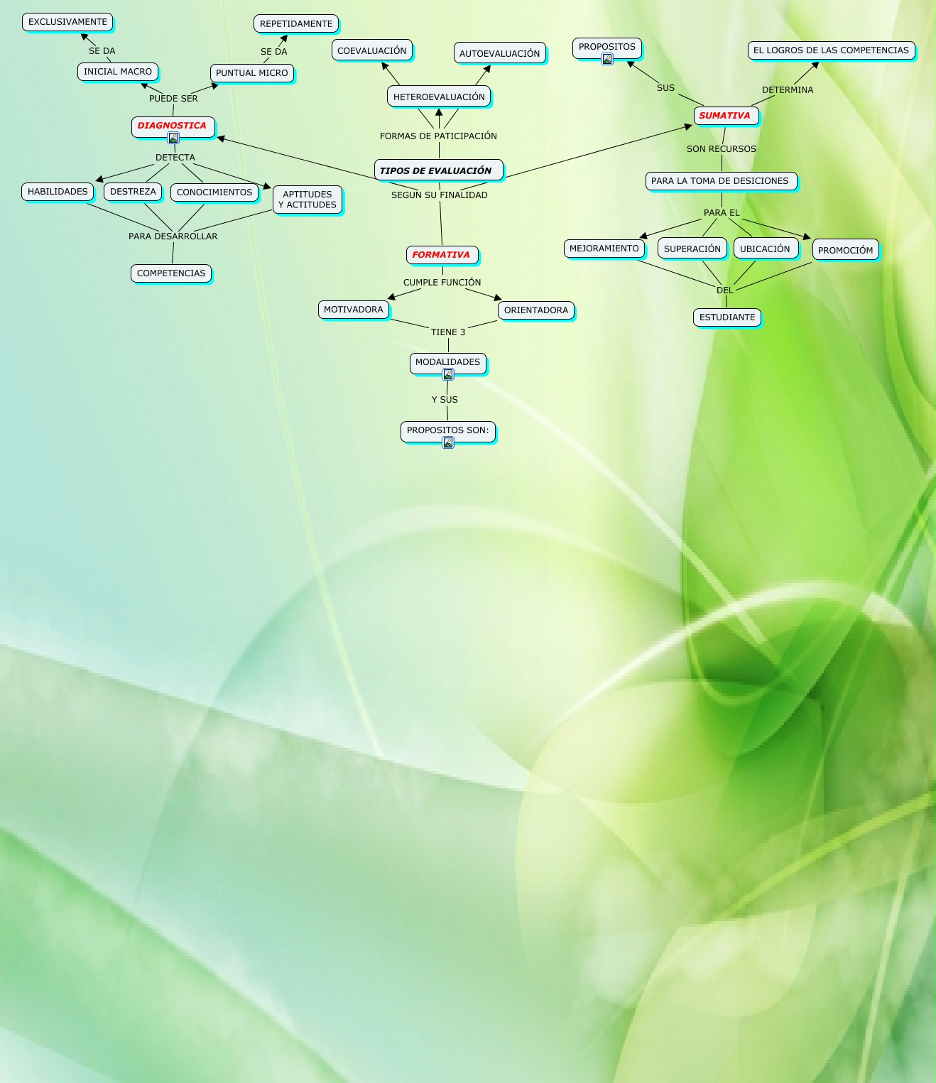 Este Cmap, tiene información relacionada con: TIPOS DE EVALUACION, TIPOS DE EVALUACIÓN FORMAS DE PATICIPACIÓN AUTOEVALUACIÓN, FORMATIVA CUMPLE FUNCIÓN MOTIVADORA, PARA LA TOMA DE DESICIONES PARA EL UBICACIÓN, DIAGNOSTICA DETECTA HABILIDADES, MODALIDADES Y SUS PROPOSITOS SON:, FORMATIVA CUMPLE FUNCIÓN ORIENTADORA, SUPERACIÓN DEL ESTUDIANTE, SUMATIVA DETERMINA EL LOGROS DE LAS COMPETENCIAS, DIAGNOSTICA DETECTA APTITUDES Y ACTITUDES, SUMATIVA SUS PROPOSITOS, CONOCIMIENTOS PARA DESARROLLAR COMPETENCIAS, DIAGNOSTICA DETECTA CONOCIMIENTOS, TIPOS DE EVALUACIÓN SEGUN SU FINALIDAD FORMATIVA, UBICACIÓN DEL ESTUDIANTE, MEJORAMIENTO DEL ESTUDIANTE, DIAGNOSTICA PUEDE SER PUNTUAL MICRO, APTITUDES Y ACTITUDES PARA DESARROLLAR COMPETENCIAS, HABILIDADES PARA DESARROLLAR COMPETENCIAS, PUNTUAL MICRO SE DA REPETIDAMENTE, TIPOS DE EVALUACIÓN SEGUN SU FINALIDAD SUMATIVA