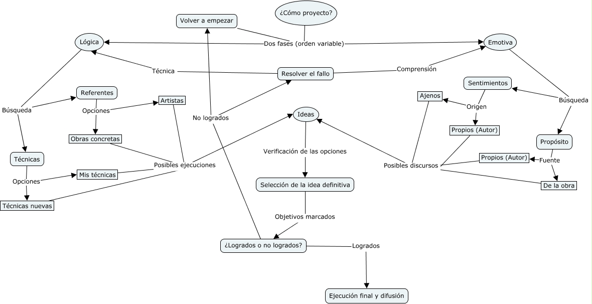 Este Cmap, tiene información relacionada con: Elena Reboul Pardo_Cómo proyecto.cmap, Ajenos Posibles discursos Ideas, Artistas Posibles ejecuciones Ideas, Ideas Verificación de las opciones Selección de la idea definitiva, Técnicas Opciones Mis técnicas, De la obra Posibles discursos Ideas, ¿Cómo proyecto? Dos fases (orden variable) Emotiva, Resolver el fallo Comprensión Emotiva, Obras concretas Posibles ejecuciones Ideas, Mis técnicas Posibles ejecuciones Ideas, Emotiva Búsqueda Sentimientos, Volver a empezar Dos fases (orden variable) Lógica, ¿Logrados o no logrados? No logrados Volver a empezar, Técnicas nuevas Posibles ejecuciones Ideas, Lógica Búsqueda Referentes, Referentes Opciones Artistas, Volver a empezar Dos fases (orden variable) Emotiva, Propósito Fuente Propios (Autor), Referentes Opciones Obras concretas, ¿Cómo proyecto? Dos fases (orden variable) Lógica, Sentimientos Origen Ajenos
