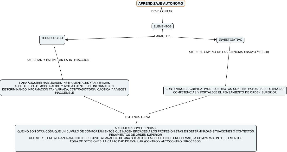 Este Cmap, tiene información relacionada con: Guillermo_vasquez_eje3, ELEMENTOS CARACTER TEGNOLOGICO, INVESTIGATIVO SIGUE EL CAMINO DE LAS CIENCIAS ENSAYO YERROR CONTENIDOS SIGNIFICATIVOS: LOS TEXTOS SON PRETEXTOS PARA POTENCIAR COMPETENCIAS Y FORTALECE EL PENSAMIENTO DE ORDEN SUPERIOR, TEGNOLOGICO FACILITAN Y ESTIMULAN LA INTERACCION PARA ADQUIRIR HABILIDADES INSTRUMENTALES Y DESTREZAS ACCEDIENDO DE MODO RAPIDO Y AGIL A FUENTES DE INFORMACION DESCRIMINANDO INFORMACION TAN VARIADA, CONTRADICTORIA, CAOTICA Y A VECES INACCESIBLE, APRENDIZAJE AUTONOMO DEVE CONTAR ELEMENTOS, ELEMENTOS CARACTER INVESTIGATIVO, PARA ADQUIRIR HABILIDADES INSTRUMENTALES Y DESTREZAS ACCEDIENDO DE MODO RAPIDO Y AGIL A FUENTES DE INFORMACION DESCRIMINANDO INFORMACION TAN VARIADA, CONTRADICTORIA, CAOTICA Y A VECES INACCESIBLE ESTO NOS LLEVA A ADQUIRIR COMPETENCIAS. QUE NO SON OTRA COSA QUE UN CUMULO DE COMPORTAMIENTOS QUE HACEN EFICACES A LOS PROFESIONISTAS EN DETERMINADAS SITUACIONES O CONTEXTOS. PESAMIENTOS DE ORDEN SUPERIOR QUE SE REFIERE AL RAZONAMIENTO DEDUCTIVO, AL ANALISIS DE UNA SITUACION, LA SOLUCION DE PROBLEMAS, LA COMPARACION DE ELEMENTOS TOMA DE DECISIONES, LA CAPACIDAD DE EVALUAR (CONTRO Y AUTOCONTROL)PROCESOS, CONTENIDOS SIGNIFICATIVOS: LOS TEXTOS SON PRETEXTOS PARA POTENCIAR COMPETENCIAS Y FORTALECE EL PENSAMIENTO DE ORDEN SUPERIOR ESTO NOS LLEVA A ADQUIRIR COMPETENCIAS. QUE NO SON OTRA COSA QUE UN CUMULO DE COMPORTAMIENTOS QUE HACEN EFICACES A LOS PROFESIONISTAS EN DETERMINADAS SITUACIONES O CONTEXTOS. PESAMIENTOS DE ORDEN SUPERIOR QUE SE REFIERE AL RAZONAMIENTO DEDUCTIVO, AL ANALISIS DE UNA SITUACION, LA SOLUCION DE PROBLEMAS, LA COMPARACION DE ELEMENTOS TOMA DE DECISIONES, LA CAPACIDAD DE EVALUAR (CONTRO Y AUTOCONTROL)PROCESOS