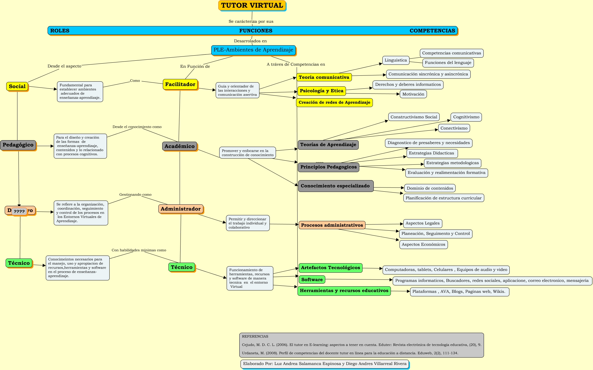 Este Cmap, tiene información relacionada con: COMPETENCIAS DE UN TUTOR VIRTUAL MAPETIC, Funcionamiento de herramientas, recursos y software de manera tecnica en el entorno Virtual ???? Herramientas y recursos educativos, Guía y orientador de las interacciones y comunicación asertiva ???? Creación de redes de Aprendizaje, Directivo ???? ????, Psicología y Etica ???? Derechos y deberes informaticos, Funcionamiento de herramientas, recursos y software de manera tecnica en el entorno Virtual ???? Software, Social ???? Pedagógico, Promover y enfocarse en la construcción de conocimiento ???? Conocimiento especializado, Guía y orientador de las interacciones y comunicación asertiva ???? Teoria comunicativa, Teoria comunicativa ???? Comunicación sincrónica y asincrónica, Linguistica ???? Competencias comunicativas, Procesos administrativos ???? Planeación, Seguimento y Control, Académico ???? Administrador, Facilitador ???? Académico, ROLES FUNCIONES COMPETENCIAS Desarrolados en PLE-Ambientes de Aprendizaje, Principios Pedagogicos ???? Estrategias metodologicas, Promover y enfocarse en la construcción de conocimiento ???? Teorías de Aprendizaje, Permitir y direccionar el trabajo individual y colaborativo ???? Procesos administrativos, Principios Pedagogicos ???? Diagnostico de presaberes y necesidades, Conocimiento especializado ???? Planificación de estructura curricular, Fundamental para establecer ambientes adecuados de enseñanza-aprendizaje. Como Guía y orientador de las interacciones y comunicación asertiva