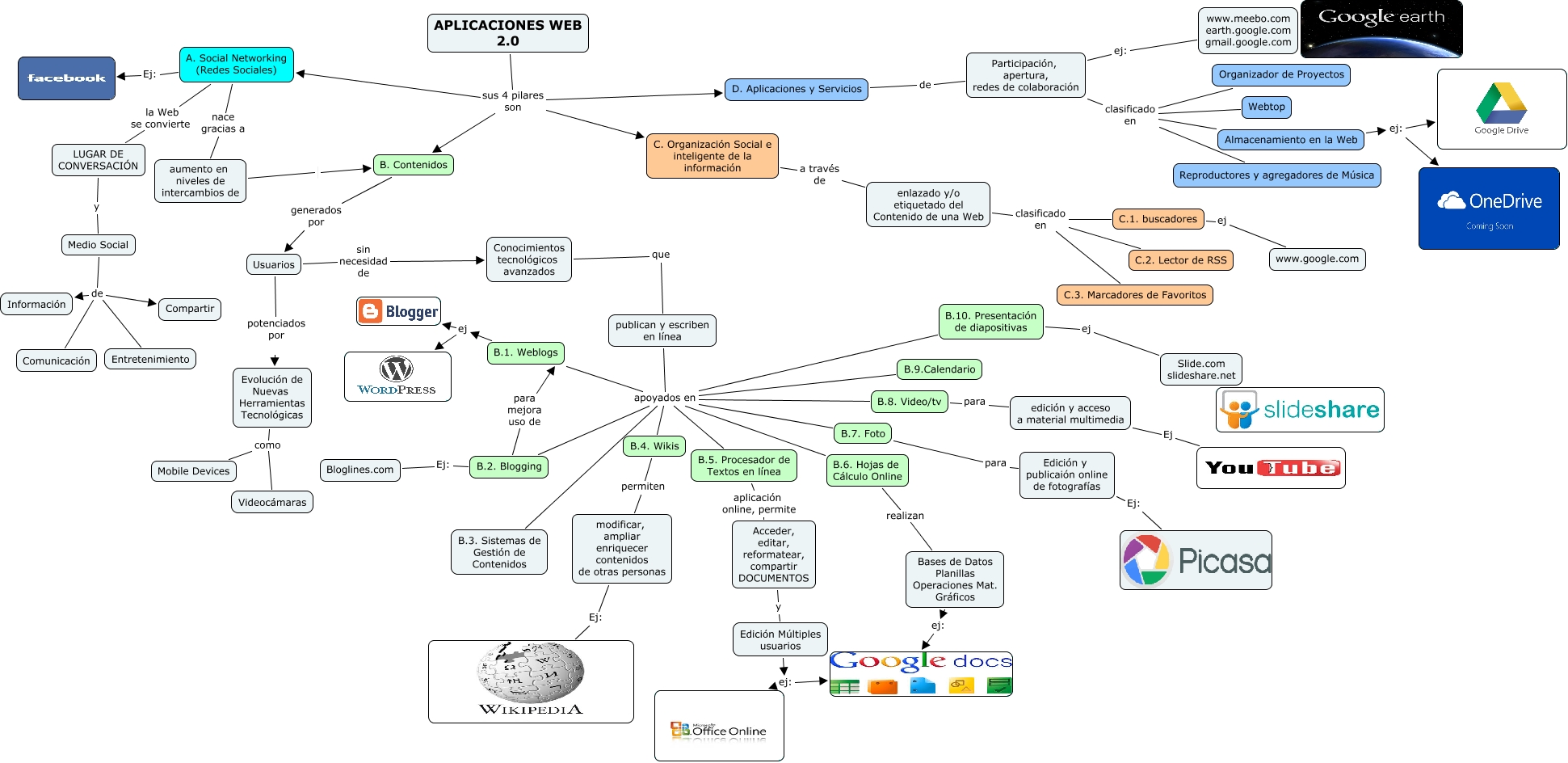 Este Cmap, tiene información relacionada con: aplicaicones web, publican y escriben en línea apoyados en B.6. Hojas de Cálculo Online, enlazado y/o etiquetado del Contenido de una Web clasificado en C.2. Lector de RSS, C. Organización Social e inteligente de la información a través de enlazado y/o etiquetado del Contenido de una Web, Acceder, editar, reformatear, compartir DOCUMENTOS y Edición Múltiples usuarios, Medio Social de Información, Conocimientos tecnológicos avanzados que publican y escriben en línea, B.7. Foto para Edición y publicaión online de fotografías, publican y escriben en línea apoyados en B.1. Weblogs, publican y escriben en línea apoyados en B.5. Procesador de Textos en línea, Edición Múltiples usuarios ej:, C.1. buscadores ej www.google.com, B.10. Presentación de diapositivas ej Slide.com slideshare.net, Evolución de Nuevas Herramientas Tecnológicas como Videocámaras, B.2. Blogging para mejora uso de B.1. Weblogs, publican y escriben en línea apoyados en B.3. Sistemas de Gestión de Contenidos, Medio Social de Compartir, Participación, apertura, redes de colaboración ej: www.meebo.com earth.google.com gmail.google.com, Participación, apertura, redes de colaboración clasificado en Reproductores y agregadores de Música, APLICACIONES WEB 2.0 sus 4 pilares son D. Aplicaciones y Servicios, A. Social Networking (Redes Sociales) Ej: