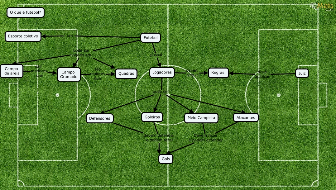 Esse mapa conceitual, produzido no IHMC CmapTools, tem a informação relacionada a: Giovanna de Deus, Jogadores deven seguir Regras, Juiz deve aploicar Regras, Jogadores pode ser Meio Campista, Futebol possui Jogadores, Campo de areia são menores que Campo Gramado, Futebol pode ser jogado em Campo Gramado, Jogadores pode ser Goleiros, Defensores devem defender e podem fazer Gols, Goleiros devem defender e podem fazer Gols, Jogadores pode ser Atacantes, Futebol é um Esporte coletivo, Futebol pode ser jogado em Campo de areia, Jogadores pode ser Defensores, Meio Campista Devem fazer e podem defender Gols, Futebol pode ser jogado em Quadras, Campo Gramado são maiores que Quadras, Atacantes Devem fazer e podem defender Gols