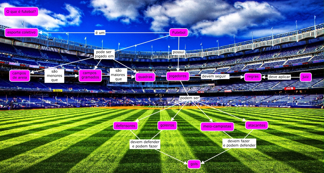 Esse mapa conceitual, produzido no IHMC CmapTools, tem a informação relacionada a: Dani, jogadores podem ser meio-campistas, jogadores devem seguir regras, juiz deve aplicar regras, atacantes devem fazer e podem defender gols, Futebol pode ser jogado em quadras, goleiros devem defender e podem fazer gols, Futebol possui jogadores, Futebol pode ser jogado em campos de areia, jogadores podem ser defensores, campos de areia são menores que campos gramados, Futebol pode ser jogado em campos gramados, defensores devem defender e podem fazer gols, Futebol é um esporte coletivo, jogadores podem ser atacantes, jogadores podem ser goleiros, campos gramados são maiores que quadras, meio-campistas devem fazer e podem defender gols